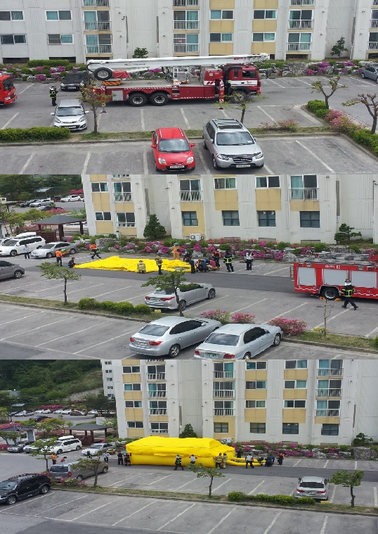 태백소방서(서장 이동학)은 15일 오후 2시 황지동 소재 주공3차 아파트에서 소방공무원과 관계자들이 참여한 가운데 고층건물 현장대응능력 강화를 위한 합동적응훈련을 실시하였으며, 아파트 관계자들과 안전매트 전개훈련 및 소방안전교육을 실시하였습니다.