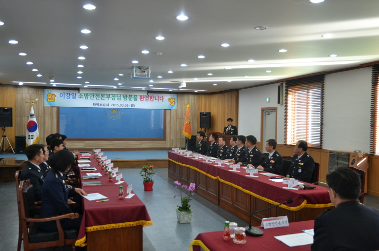 이강일 본부장은 태백소방서 소방공무원과 의용소방대연합회장 등이 참석한 가운데 이동학 태백소방서장으로부터 2015년도 주요업무와 당면 현안사항을 보고 받은데 이어 어려운 환경 속에서도 지역안전을 위해 애쓰는 직원들의 노고를 치하하였다.