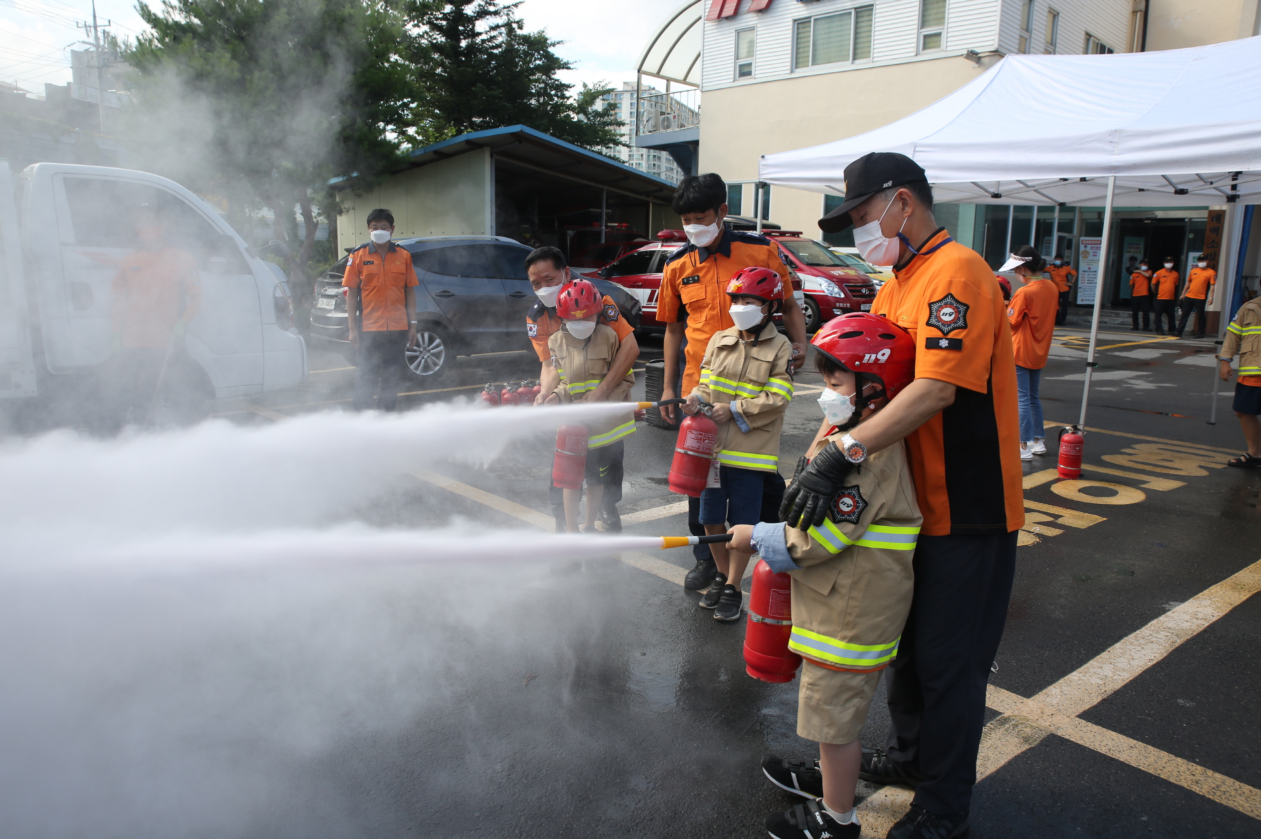 ○ 주요 내용은 ▲심폐소생술 ▲소화기 사용법 ▲소방차량 체험 ▲각종 장비 및 차량 시연 등이며, 마스크 착용 등 코로나19 방역수칙을 준수하며 진행했다.