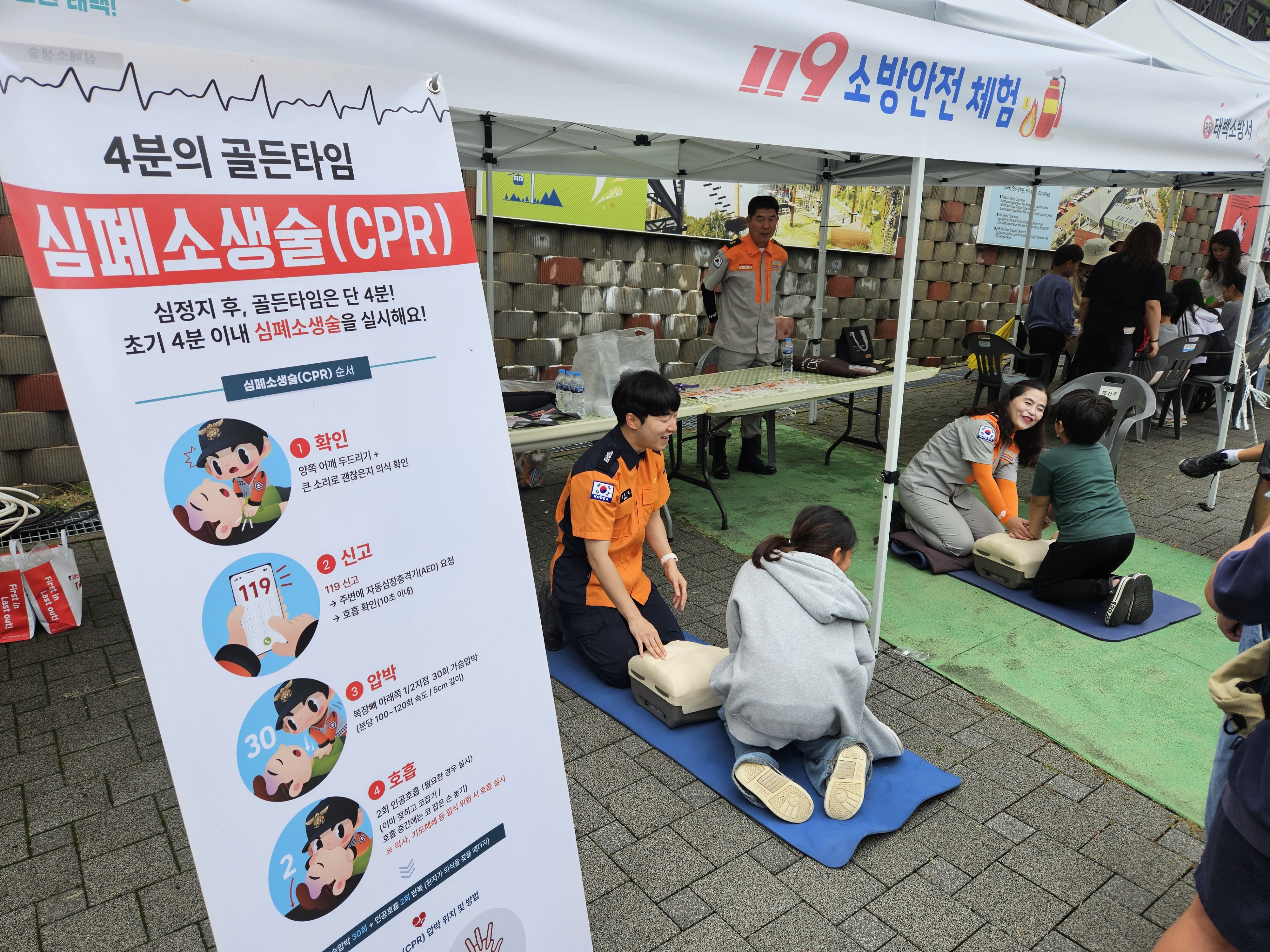 태백소방서도 축제에 참가하여 소방안전체험부스를 운영하여 심폐소생술 과 각종 소방홍보활동을 진행했습니다!