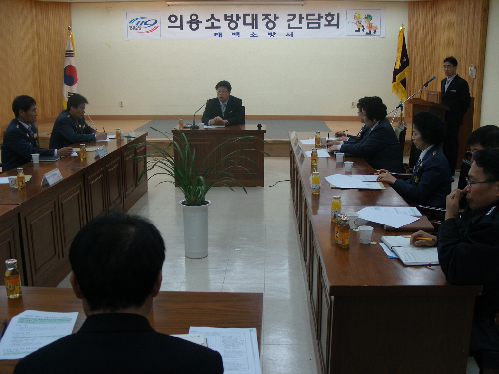 태백소방서(서장 정승진)는 3월 3일(수) 오전 대회의실에서 2010년 상반기 의용소방대장 간담회를 갖고 소방업무에 대한 설명 및 토의를 실시했다.