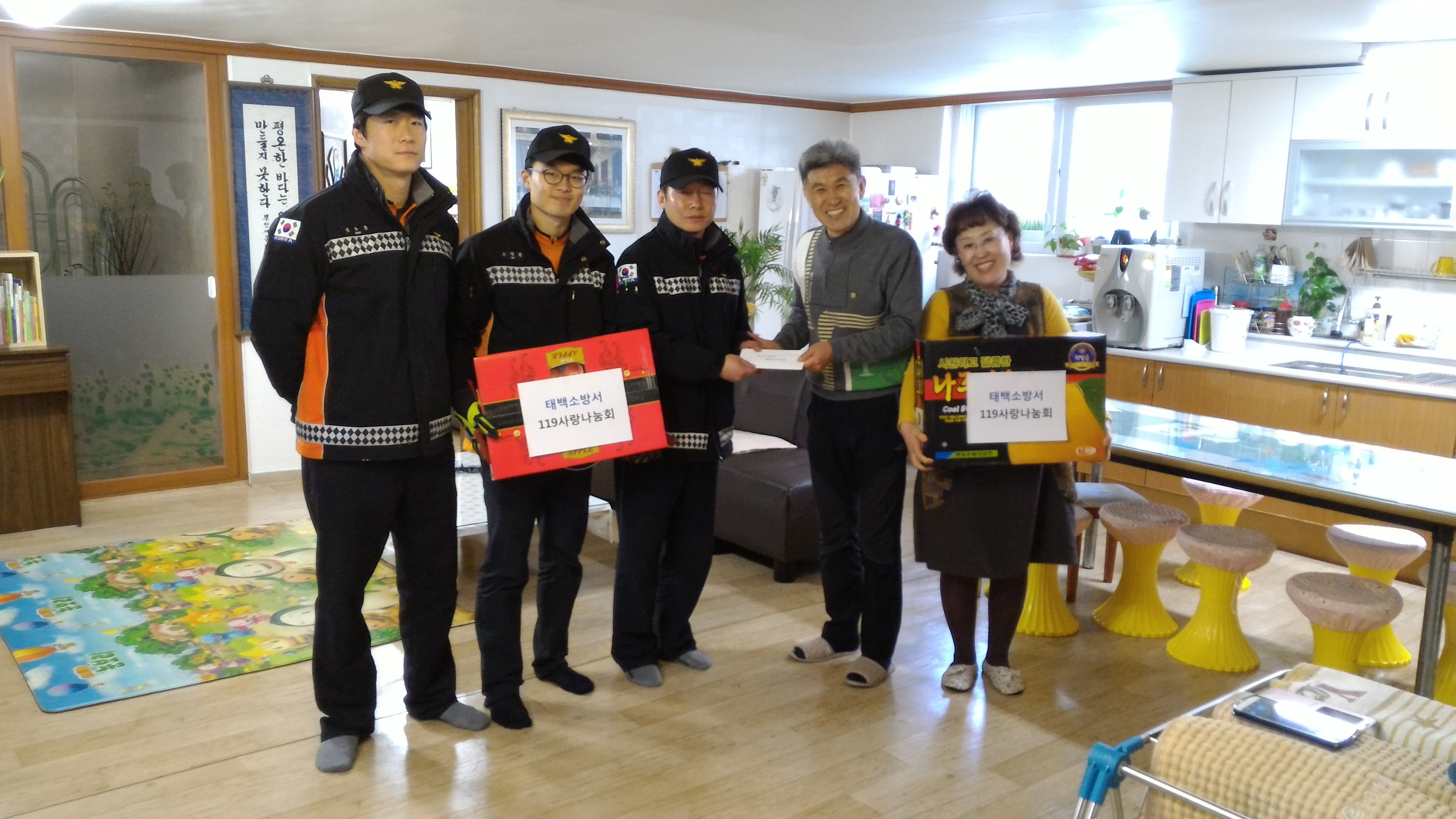 최대 명절인 설날을 맞아 어려운 이웃과 따뜻한 사랑을 함께 나누고자 이뤄진 이번 행사는 소방서 전 직원이 매월 모금한 후원기금 125만원 상당을 관내 사회복지시설 2곳(대건의집, 하늘바라기집), 순직소방관 유가족 3가구를 대상으로 방문 전달하였다.