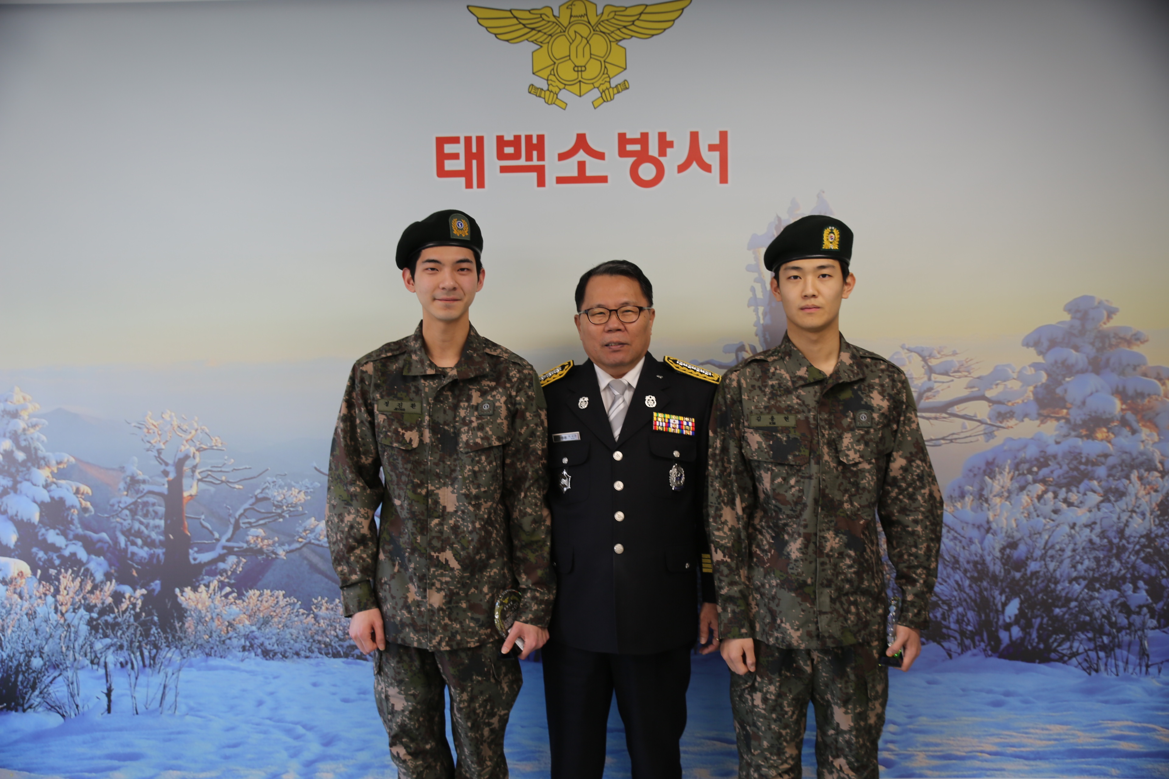 태백소방서(서장 석교준)은 8일 만기 전역하는 의무소방원 2명(수방 정진환, 김용현)의 전역식을 가졌다.