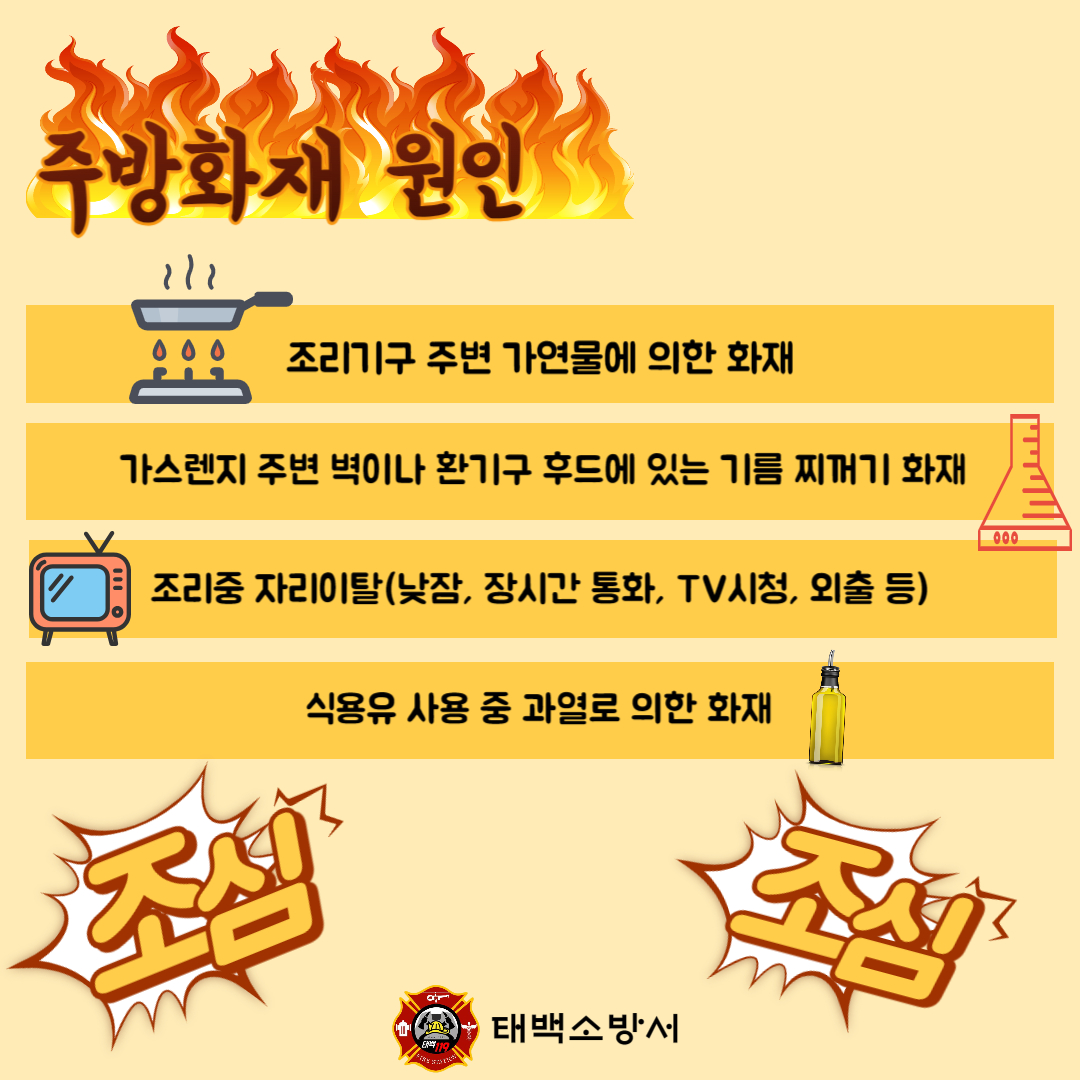 주방화재 주원인 알려드립니다