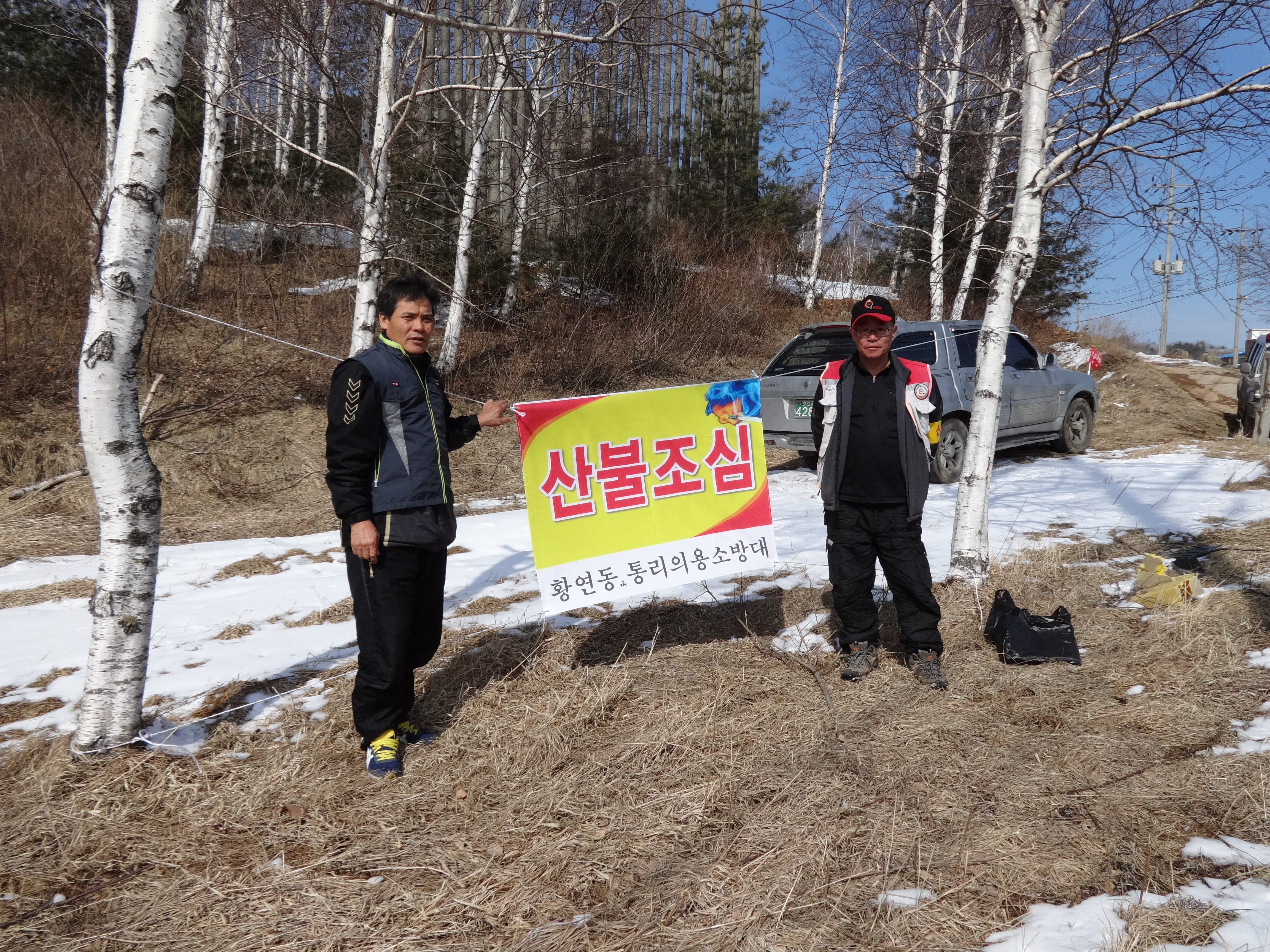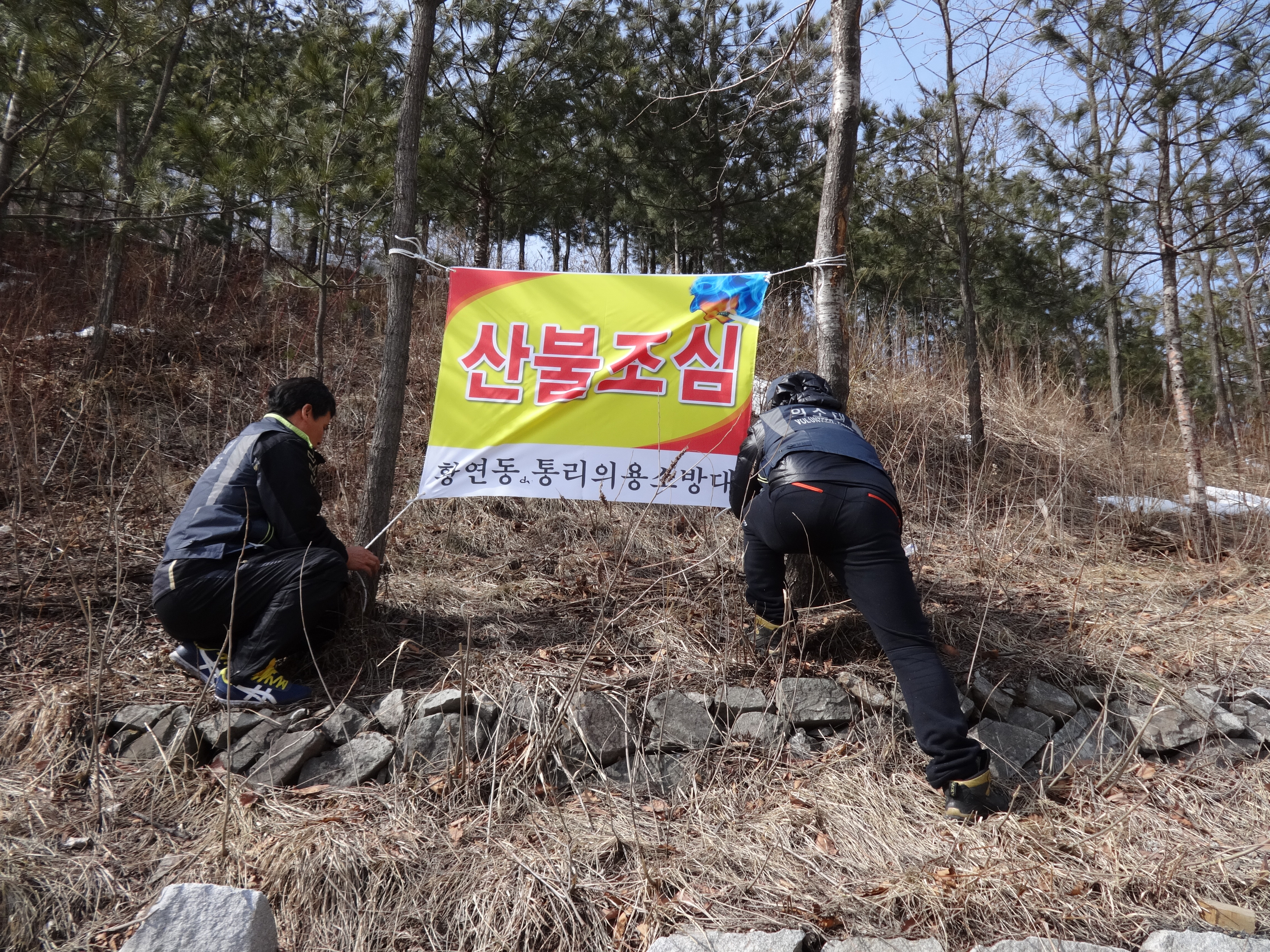 통리의용소방대 3월7일 황연동 산림지역에 현수막 달기를 실시하였읍니다 참여하신 대원여려분에게 감사드립니다..