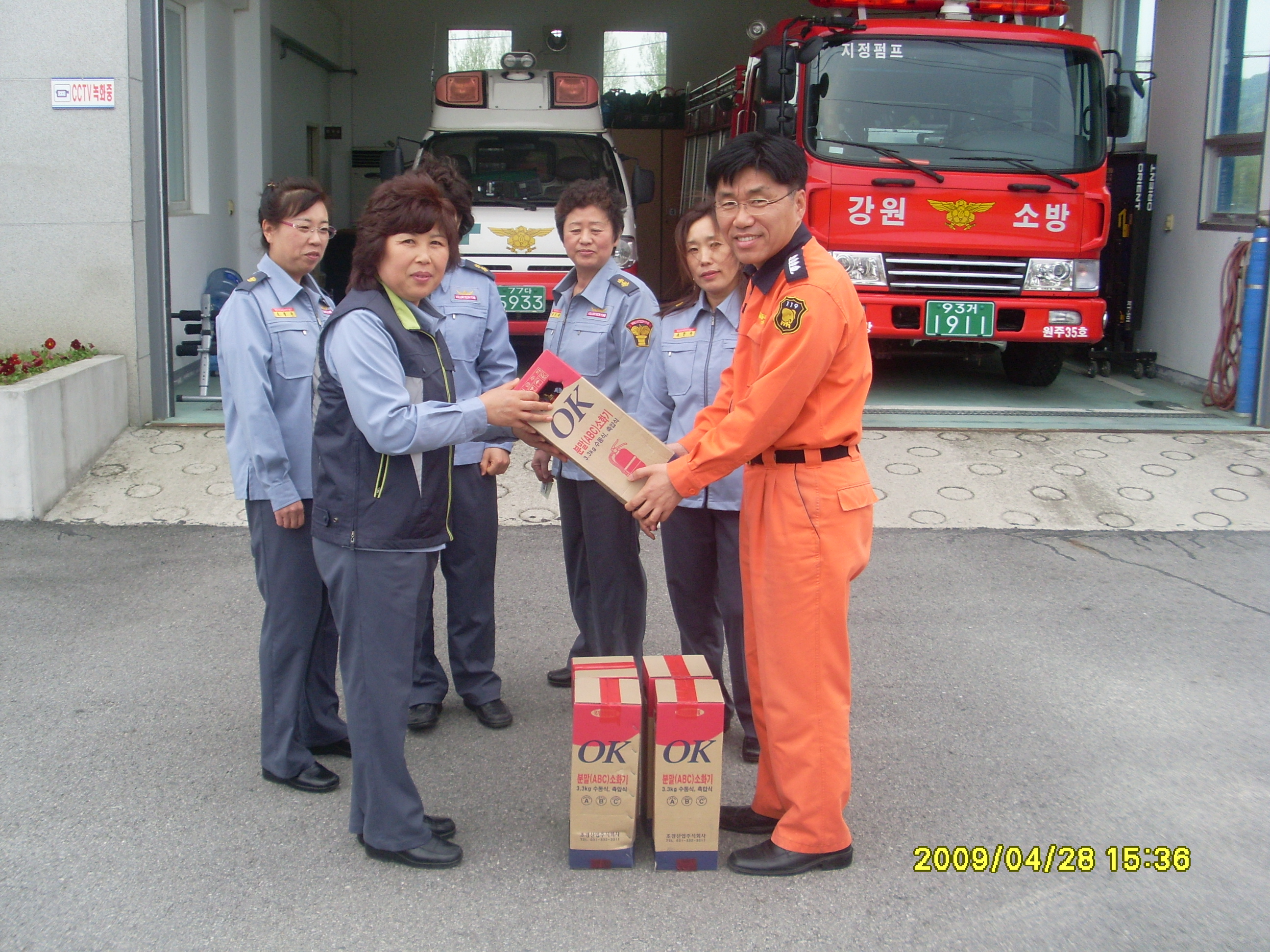 지난 4월 27일에 우리대에는 상지대학교 소방학과(한상철교수님)에서 소화기 5대를 기증받아 지정 지역대에 비치하여 놓았습니다. 앞으로는 언제든지 지역주민 누구나 같이 이용 하실수있게 되었습니다. 많은 관심 부탁드립니다. |