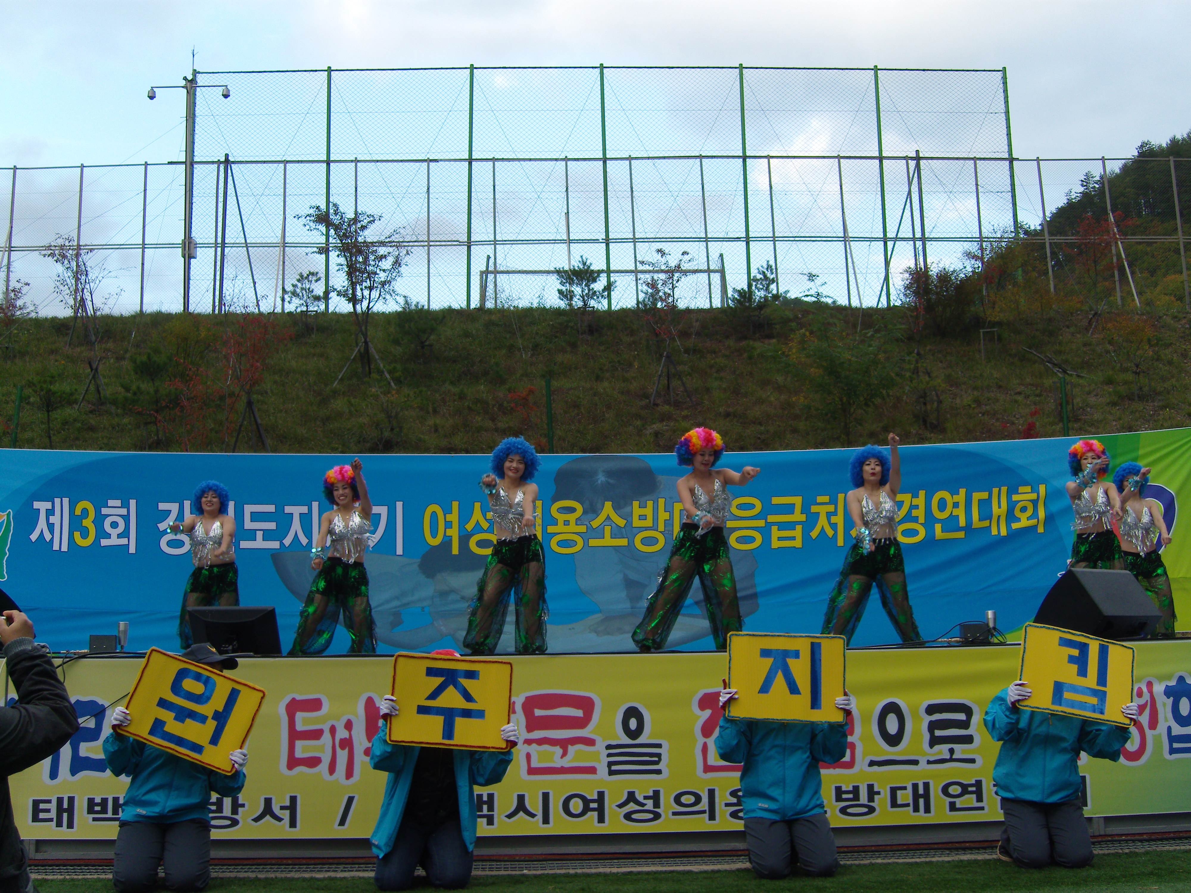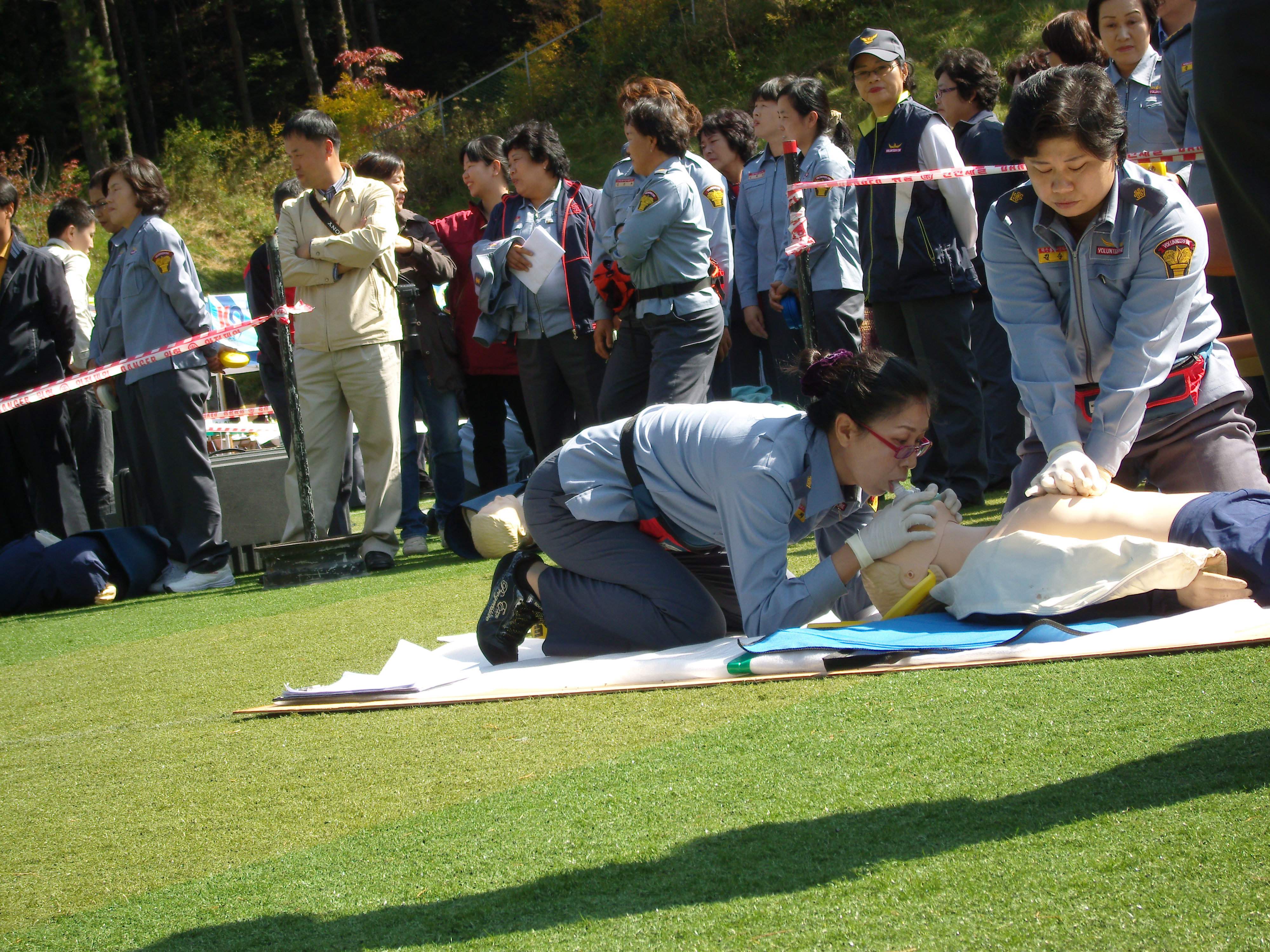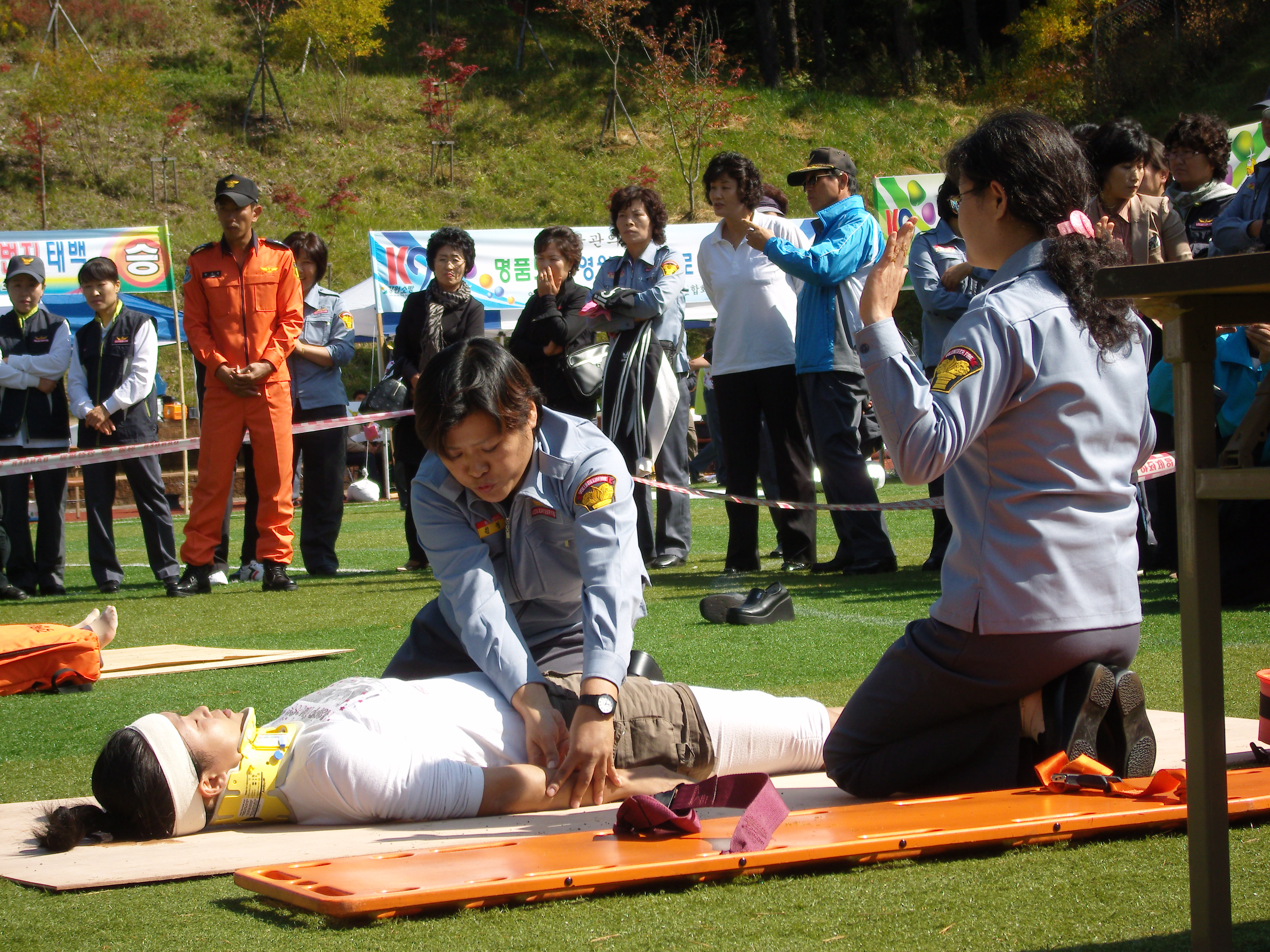 지난 10월9일 태백종합운동장에서 여성의용소방대 응급처치 기술경연대회가 열렸습니다.선수들의 열정과 노력으로 분야별로 성적이 좋은것도 있었고 그렇지 못한것도 있었지만 높은 가을하늘을 등에업고 즐거운 하루였습니다. 무엇보다도 여성의용소방대를 위해 하루종일 있는힘을 다해 응원을해주신 박흥규 소방관님을 비롯하여 직원 여러분들께도 감사의 마음을 전하고 싶습니다. 여러분! 고생 많으셨습니다.