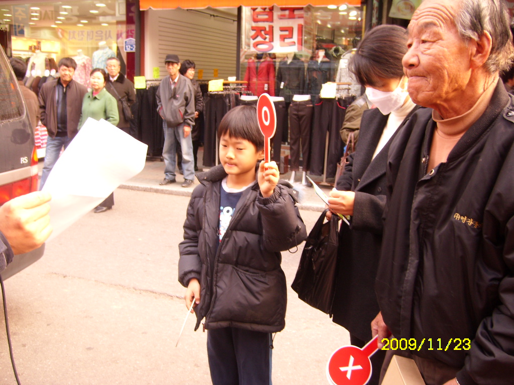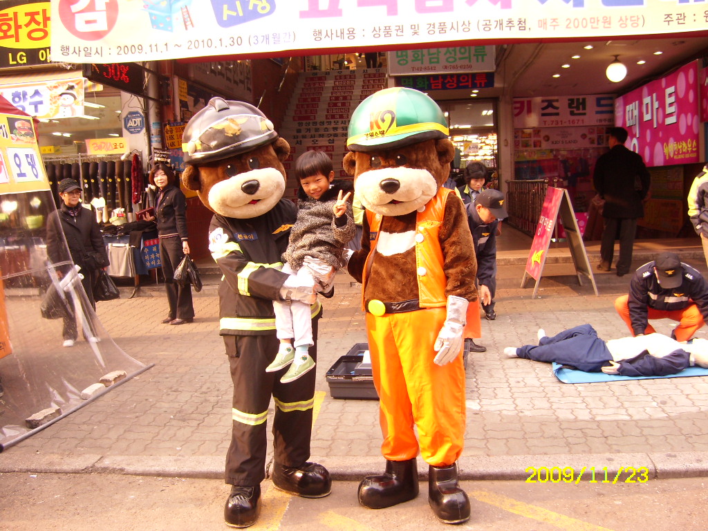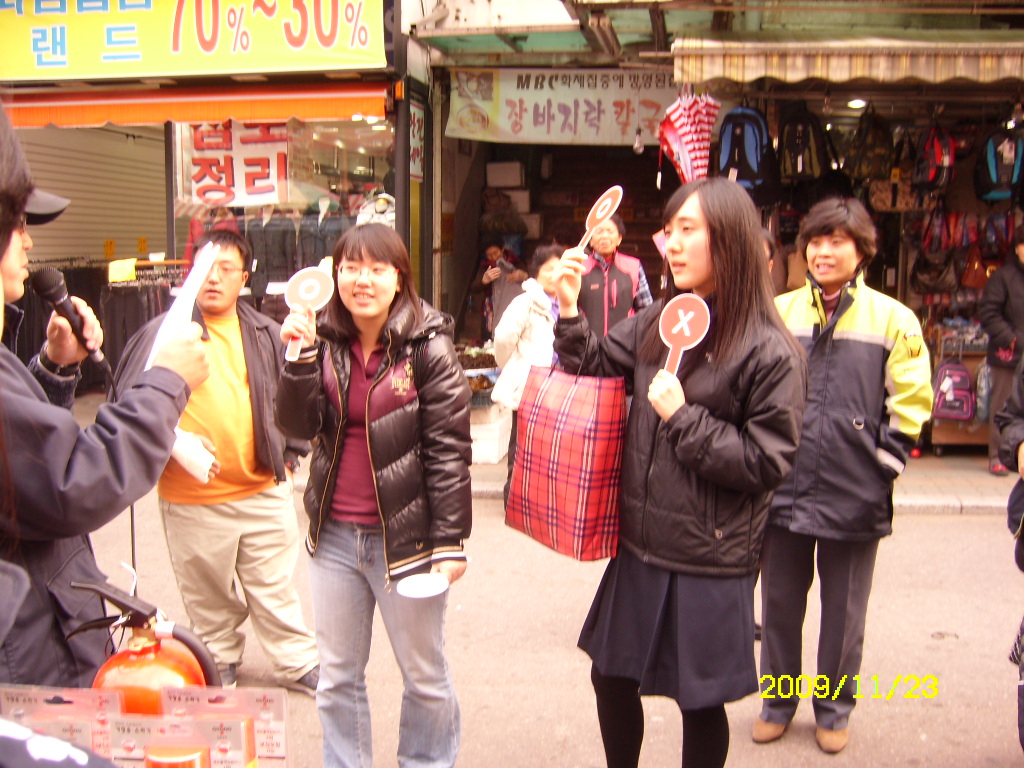 원주여성의용소방대에서는 이현자대장님 인솔하에 2009년 11월23일(월) 원주시 자유시장 시계탑 앞에서 원주소방서 직원들과 함께 불조심 OX퀴즈대회 및 119홍보활동을 하였습니다.