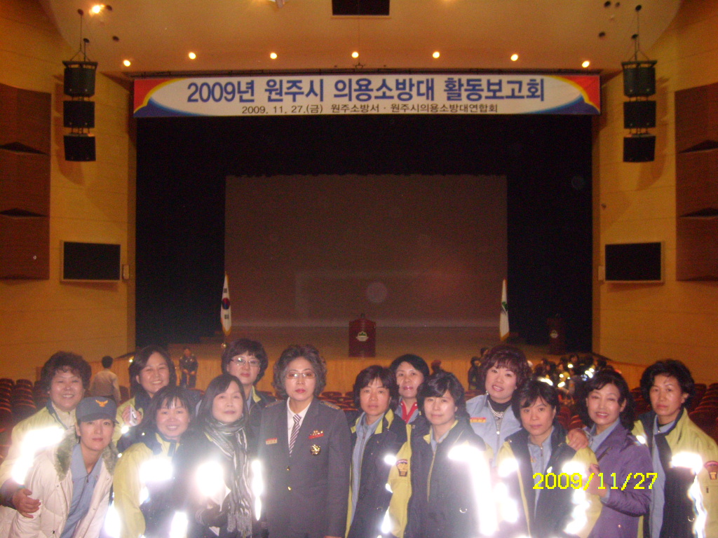 앞서 언급한바와 같이 2009년 11월 27일(금) 원주시청 백운아트홀에서 2009년 원주소방서 의용소방대 활동보고회 있었습니다.