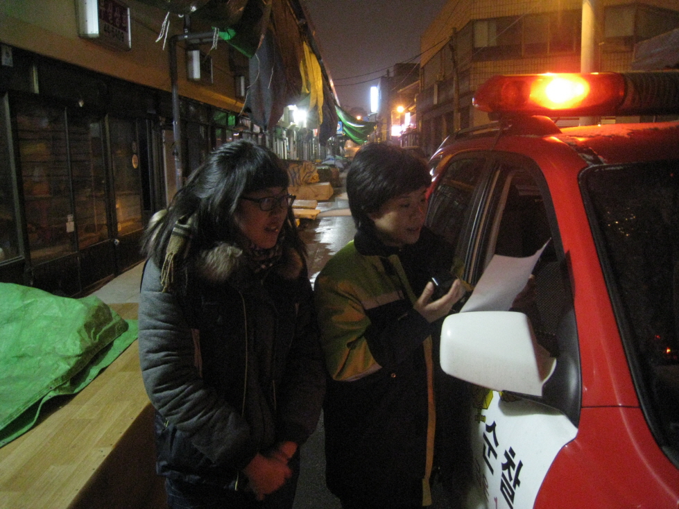 날씨가 추워지는 겨울철을 맞아, 재래시장 등을 순찰하면서 화재예방 홍보방송을