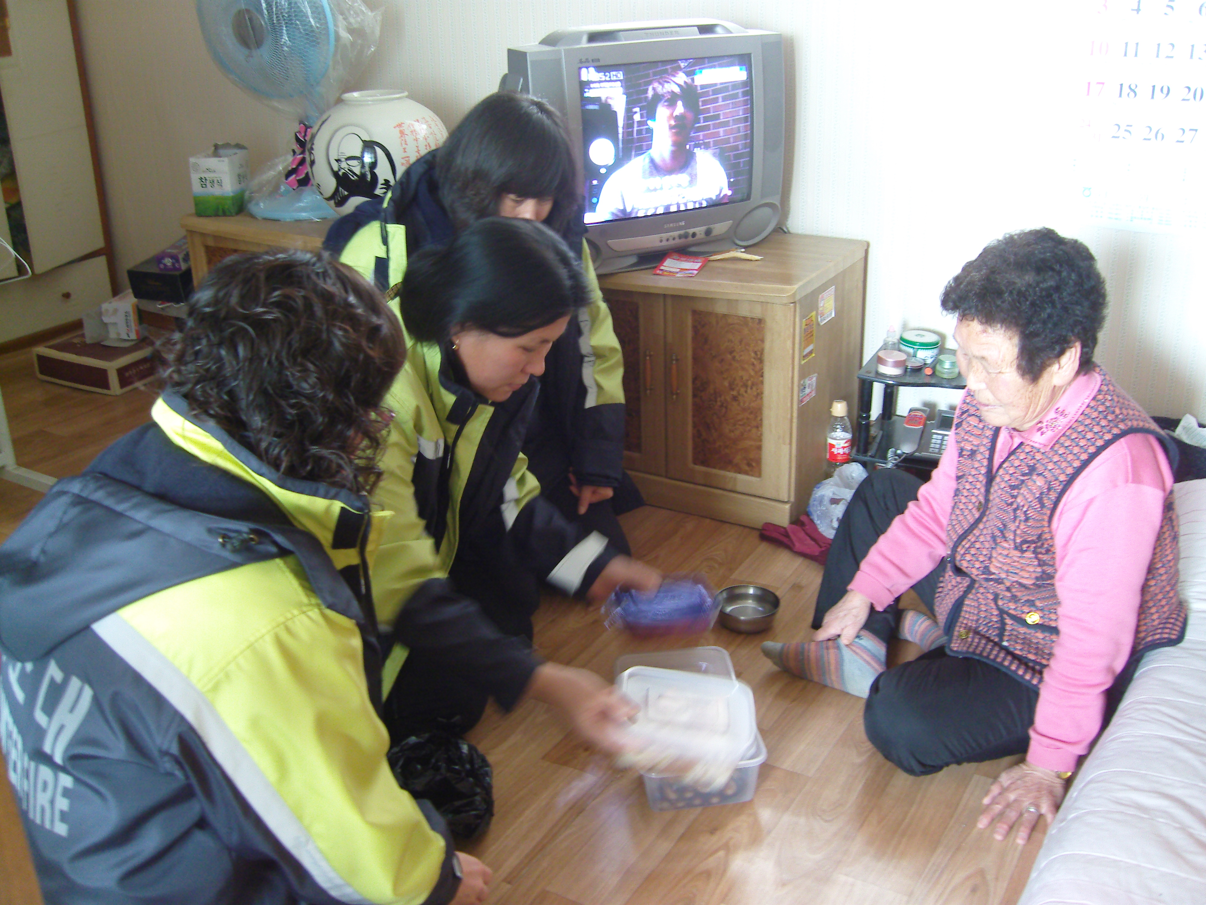 지난 1월19일(화) 흥업여성의용소방대(대장 오오석) 에서는 황재병 할아버지를 비롯하여 6가구 독거노인들께 반찬봉사를 실시하였습니다. 이번에는 총무부에서 주관하여 총무부 대원들이 각자 한가지씩 반찬을 손수 만들어와서 전달하였는데 전재관 할아버지댁을 방문하였을때 큰 김치통을 꺼낼수가 없다고 부탁을 하셔서 대원들이 김치통까지 옮겨드리고 돌아왔습니다. 작은정성 하나하나가 모여 여러분을 도울수 있어서 마음이 즐거운 하루였습니다. 총무부 대원 여러분! 고생 많으셨습니다.