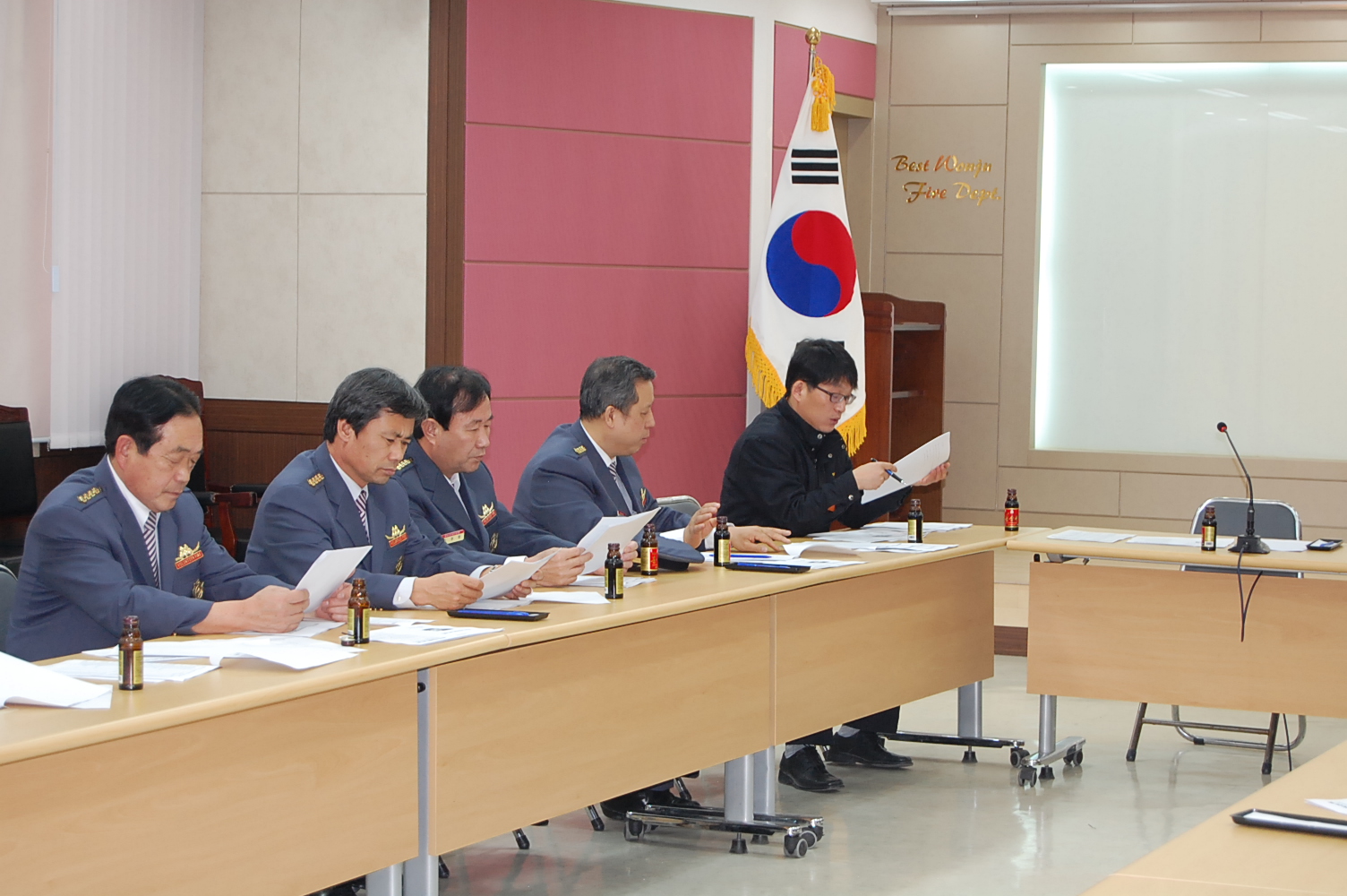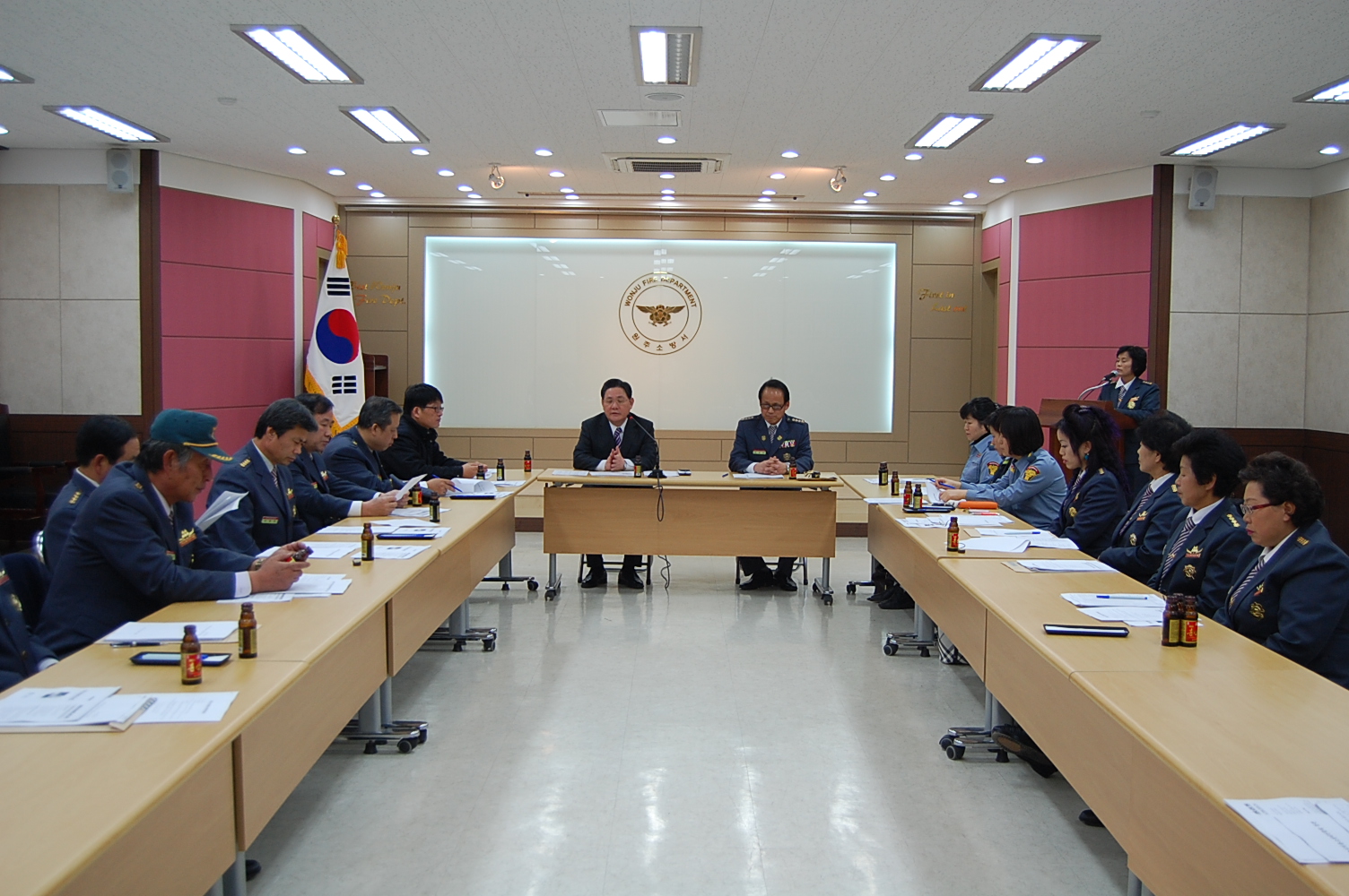 의용소방대의 효율적 운영 및 조직발전을 도모하고자 21개대 대장님들이 궂은 날씨에도 함께 자리하여 전년도 결산, 금년도 예산 및 운영 계획과 정관 개정 등 열띤 토론의 장을 가졌습니다.