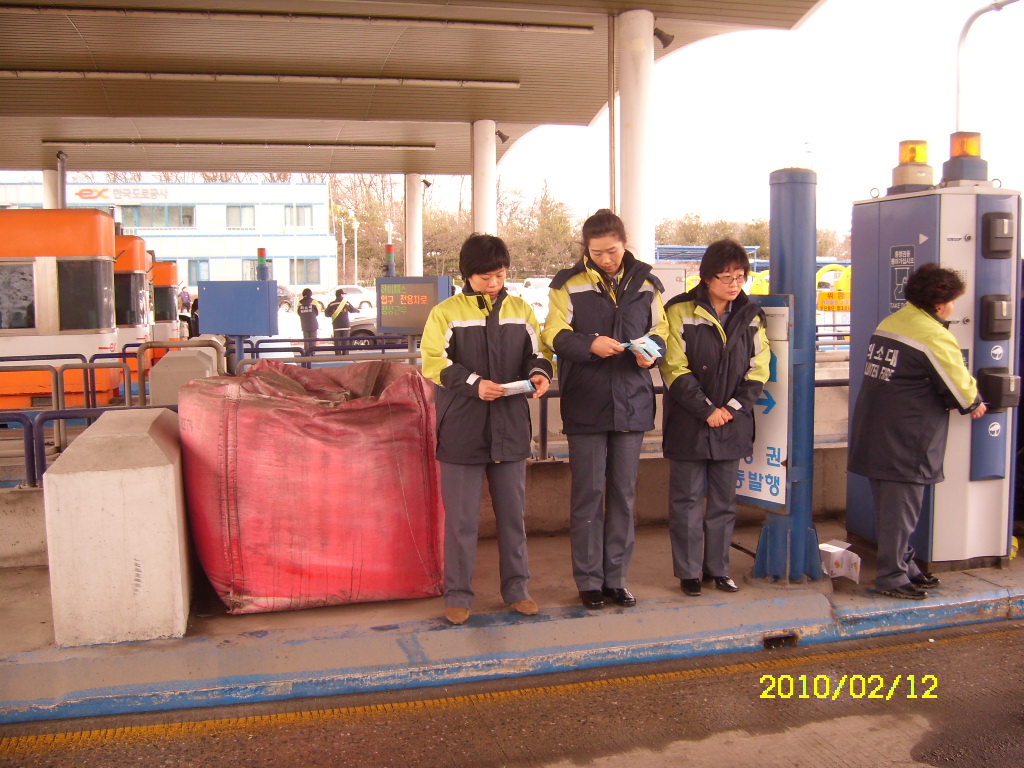 원주여성의용소방대에서는 박명자 부대장님 지휘하에 2010년 2월 12일 (금) 남원주IC에서 귀성객 차량 대상으로 화재예방 홍보 캠페인을 펼쳤습니다.