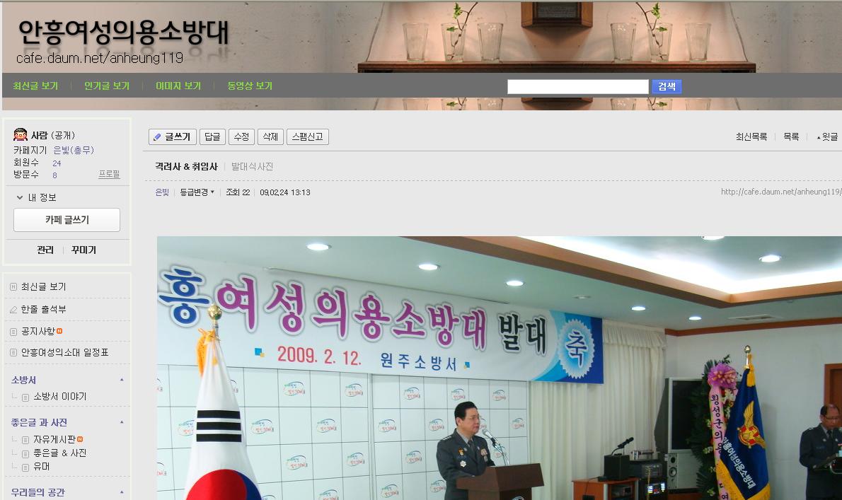 안흥여성의용소방대의 카페를 개설해 운영을 하고 있습니다.