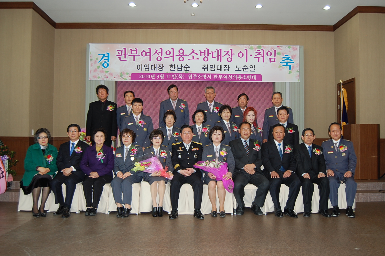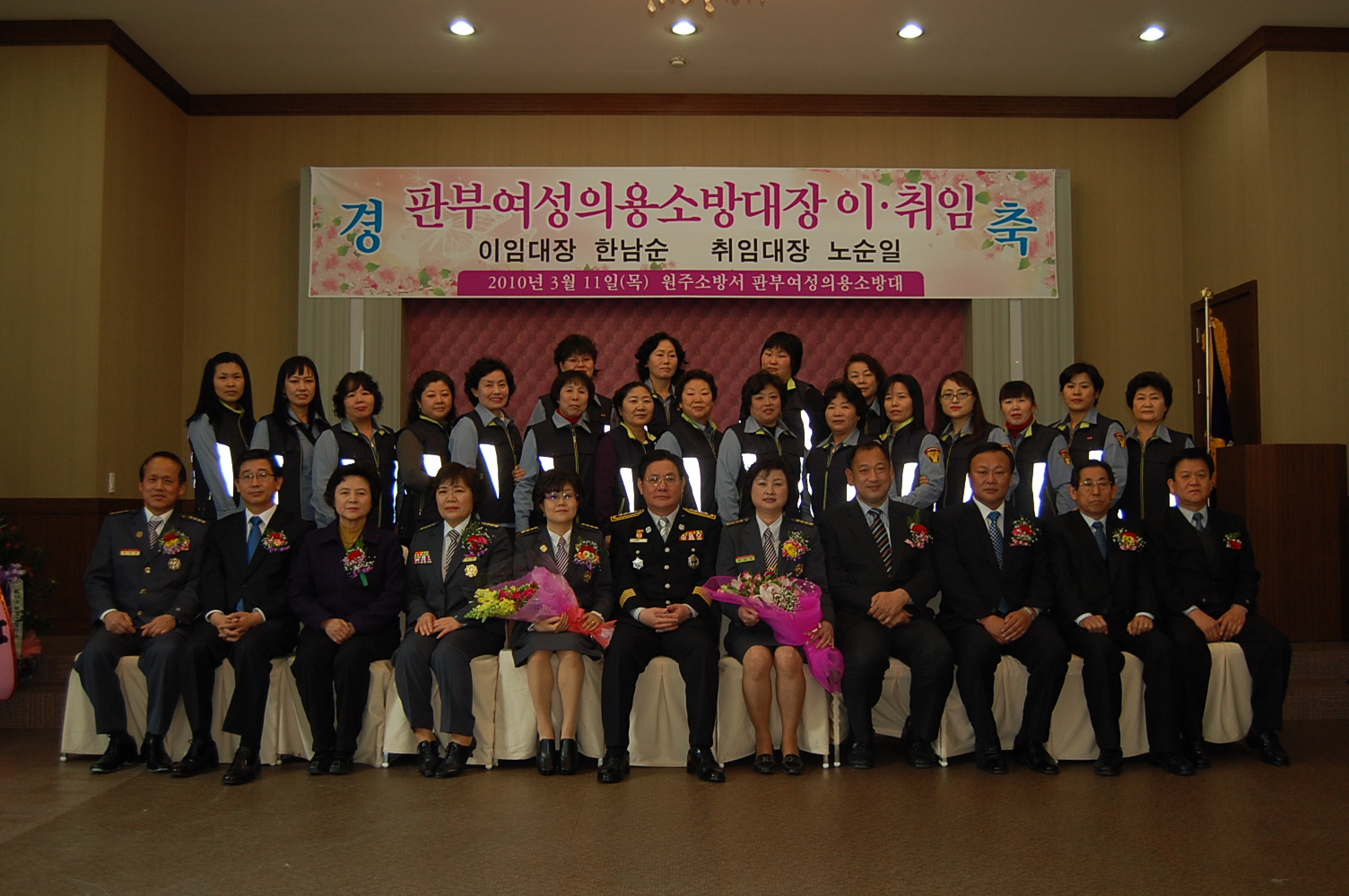 2010년 3월 11일 11시 판부면 서곡리 오페라컨벤션웨딩홀에서 원주소방서(서장.조근희) 판부여성의용소방대장 이취임식이 열렸습니다.