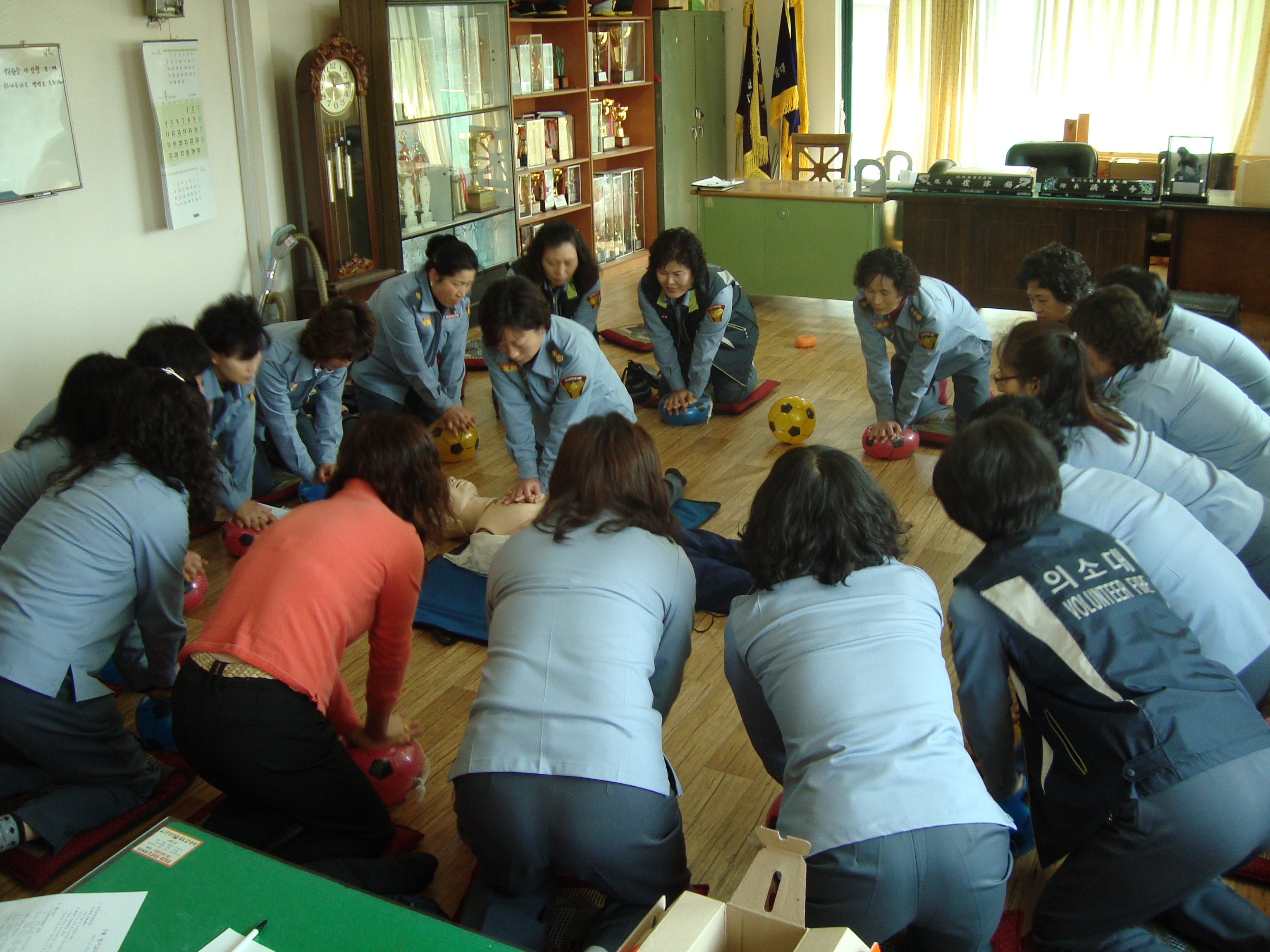 이때 실습용 애니가 부족하여 자체 보조교육용으로 일명"탱탱볼"을 구입하여 교육자재 대용으로 사용하고 있으며, 금년도에 전대원이 자격증을 획득할 수 있도록 노력하고 있습니다.