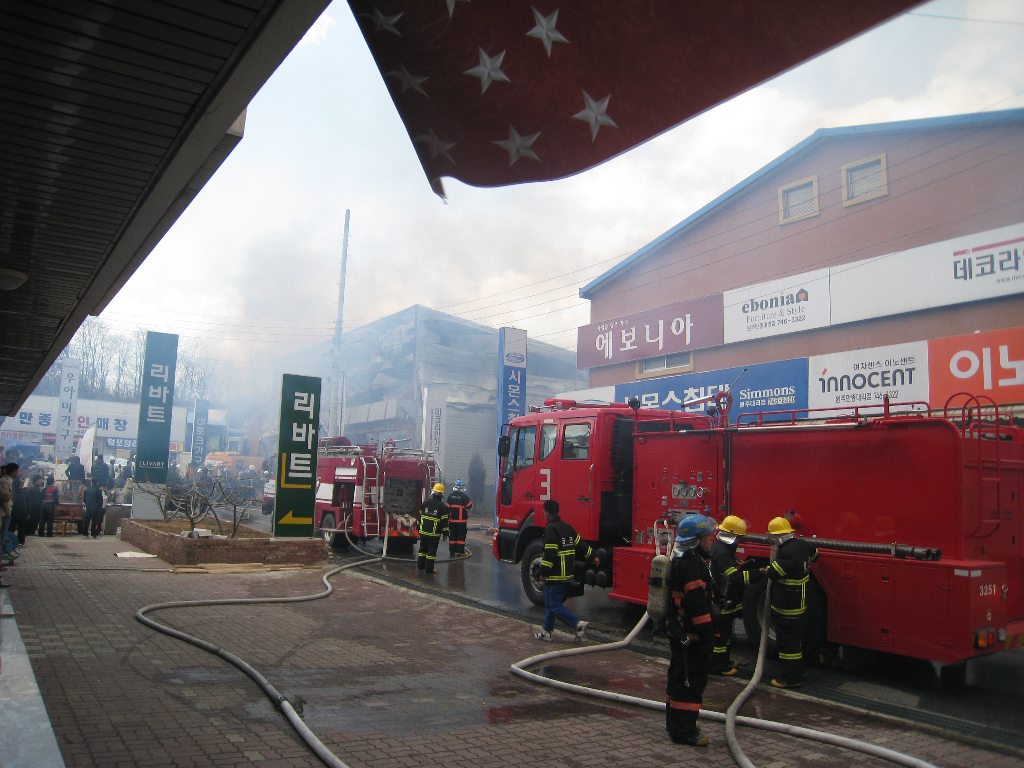 도착한 화재 현장은 안타까워하며 발을 구르는 상인들과 화마에 맞서 싸우는 소방관님, 조금이라도 불을 진압하기위해 열심히 물이 건물속으로 빨려 들어가고 있었습니다.그곳은 만종에 있는 가구단지내 상가들이였습니다. 한 소방관님이 불을 끄고 내려와 거친 한숨을 내쉬며 헬멧을 벗는데 그 얼굴에는 새까만 그름과 비를 맞은듯 온통 땀으로 범벅이였습니다. 그 모습을 보니 제 마음이 저리고 눈물이 다 나왔습니다. 다 꺼졌구나 생각했는데 건물을 해체해 보니 한쪽에서는 여전히 잔불들이 남아 다시금 화재를 일으킬 기세였습니다.