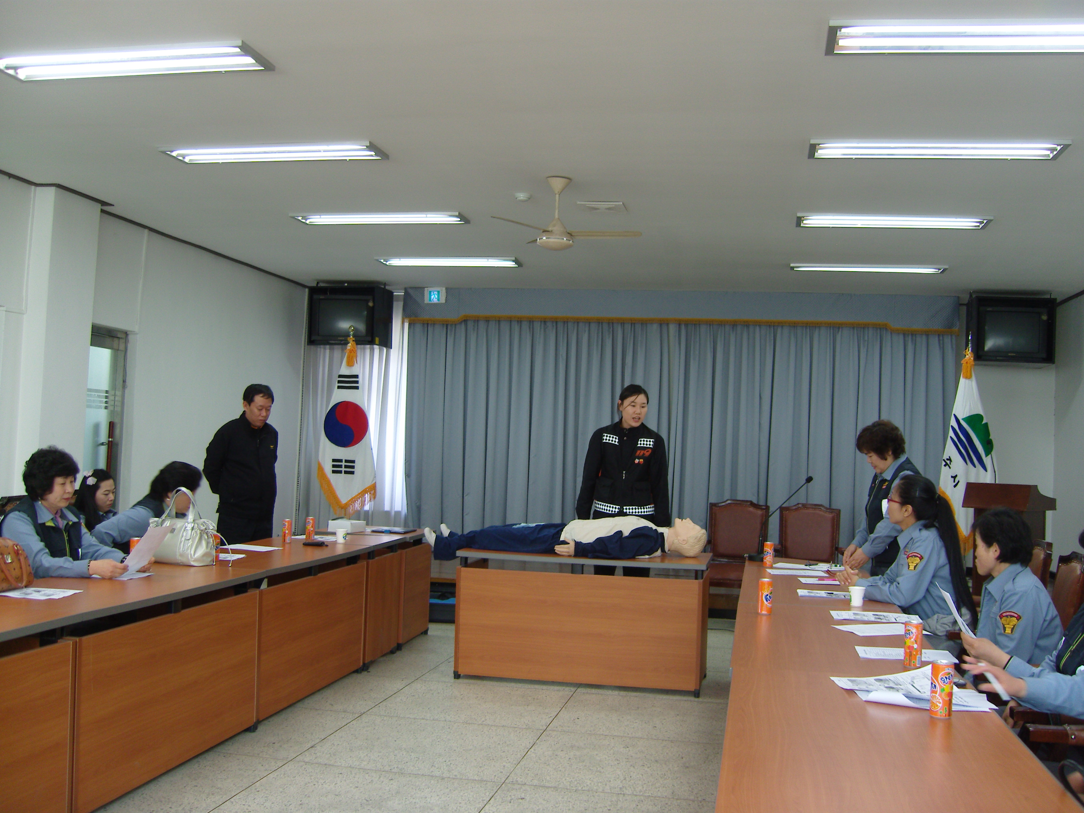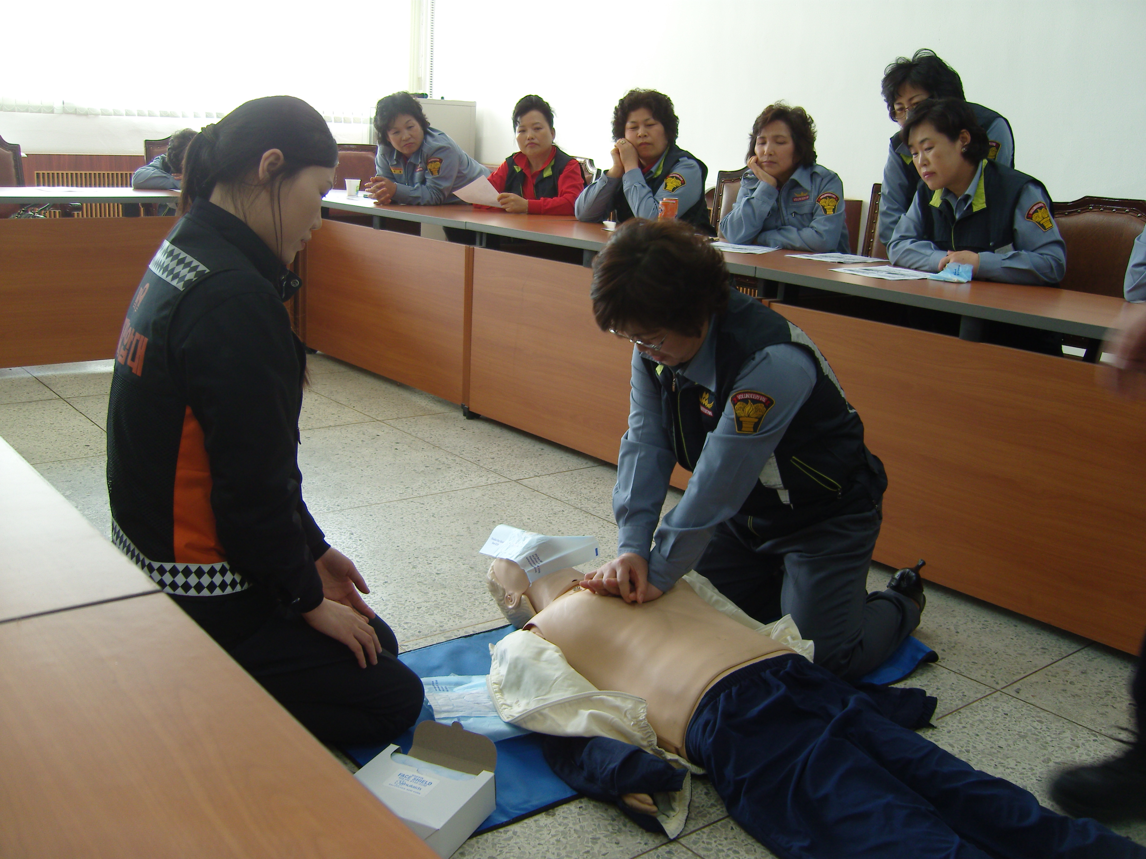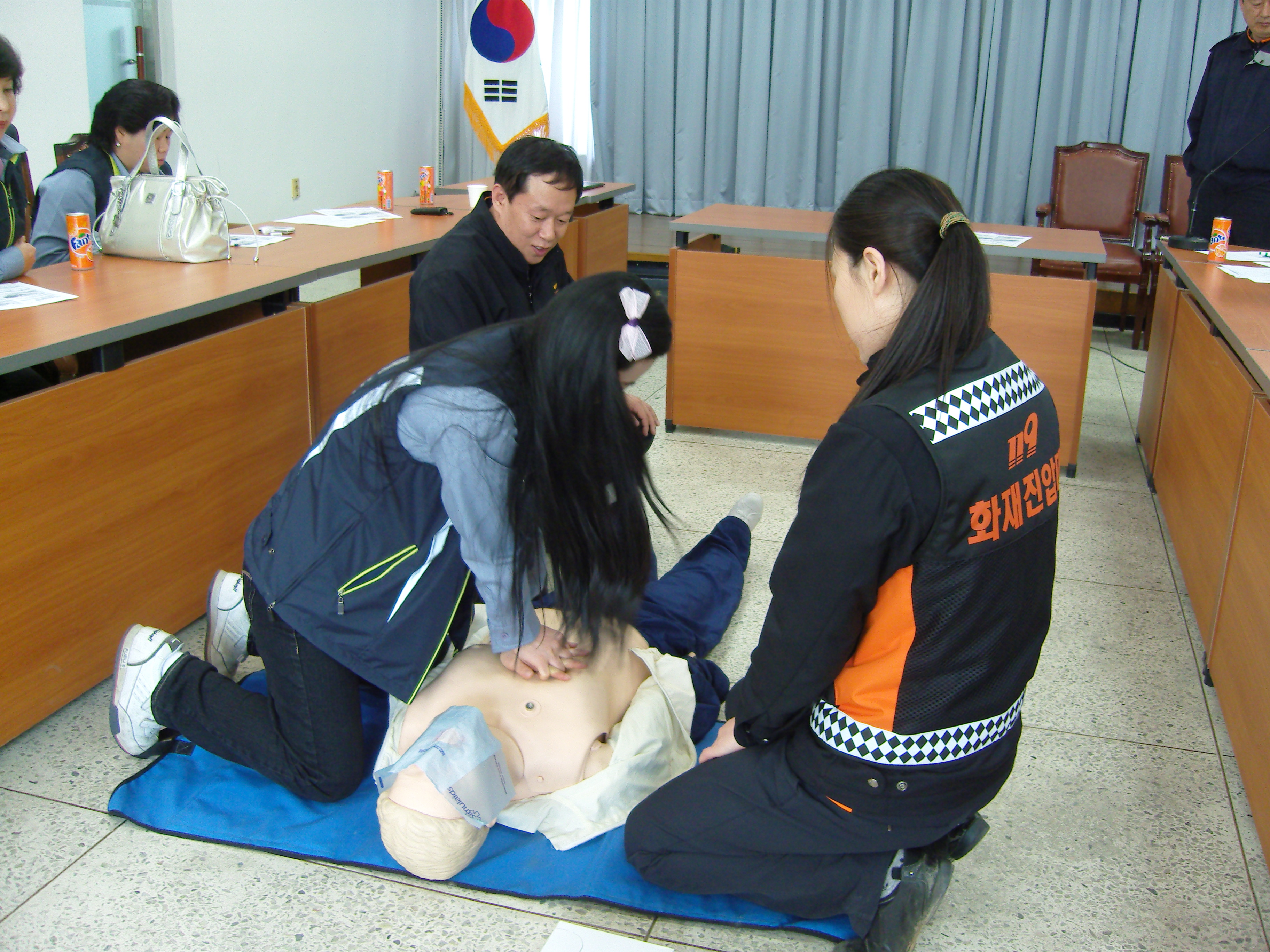 4월13일 흥업여성의용소방대(대장 오오석)에서는 4월 정기교육을 실시 하였습니다.매달 오전에 교육을 하였는데 이번달에는 남원주농협 주부대학에 수강하여 수료하는 대원이 여러명 있어서 수료식을 마치고 하느라 오후1시부터 하였는데 센터장님과 직원분들이 나오셔서 화재와의전쟁 선포 주내용과 심폐소생술 교육을 해주셨습니다. 특히 심폐소생술은 대원 한명한명이 직접해보고나서 앞으로 다가올 체육대회의 심폐소생술 선수를 선발하는데 참고하기로 하였습니다. ㅎㅎ 교육해주신 김철만 명륜센터장님을 비롯하여 직원여러분께 감사 드리며 대원 여러분 교육 받느라 수고하셨습니다.
