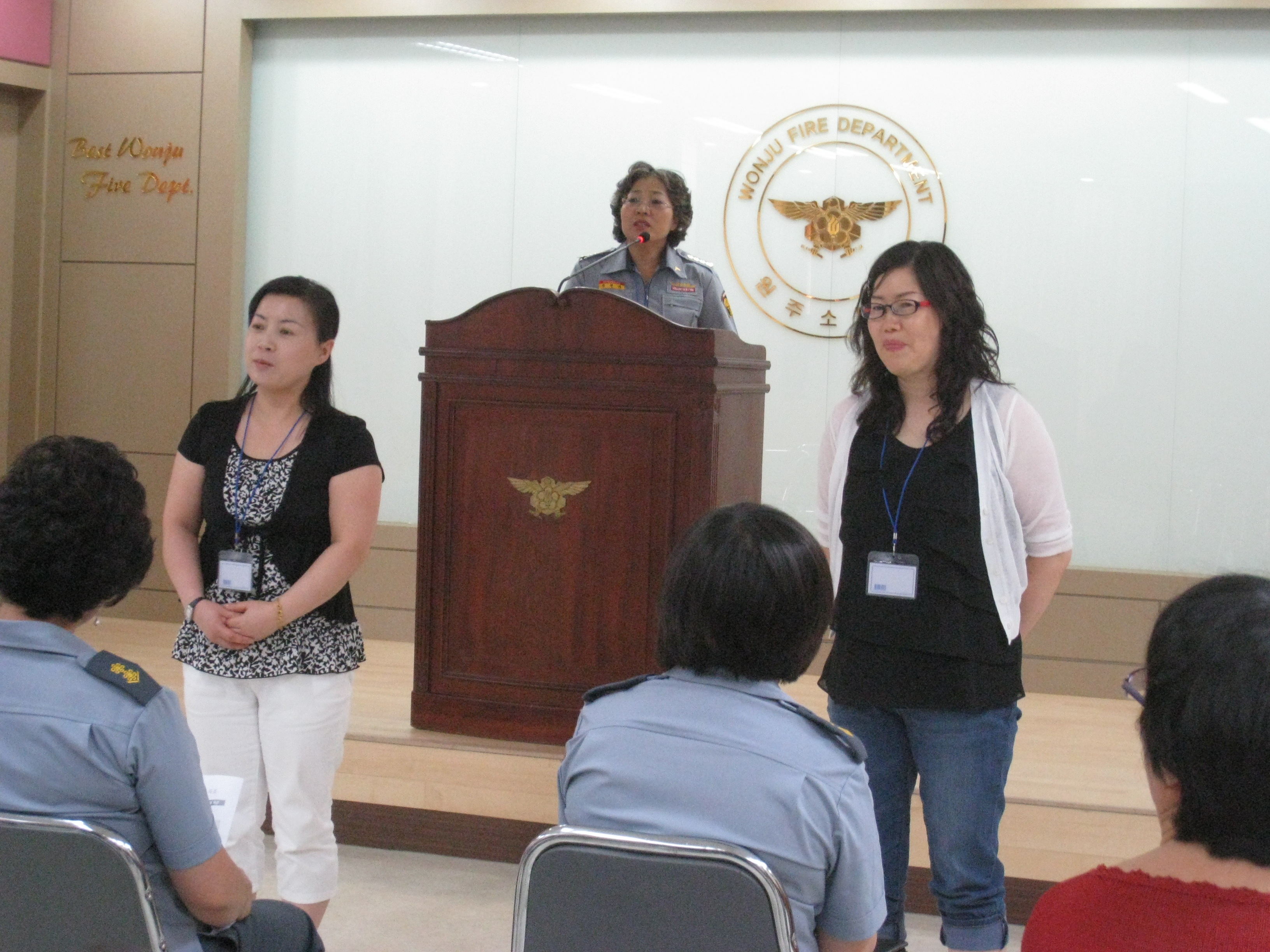 원주여성의용소방대는 7월 15일 원주소방서 대회의실에서 정기교육을 실시하였습니다. 각 부서의 그간 활동 동향과 계획을 보고 받았으며, 새로 입대한 신입대원의 소개와 대원으로서의 각오을 들어 보며, 덕담을 하였습니다.