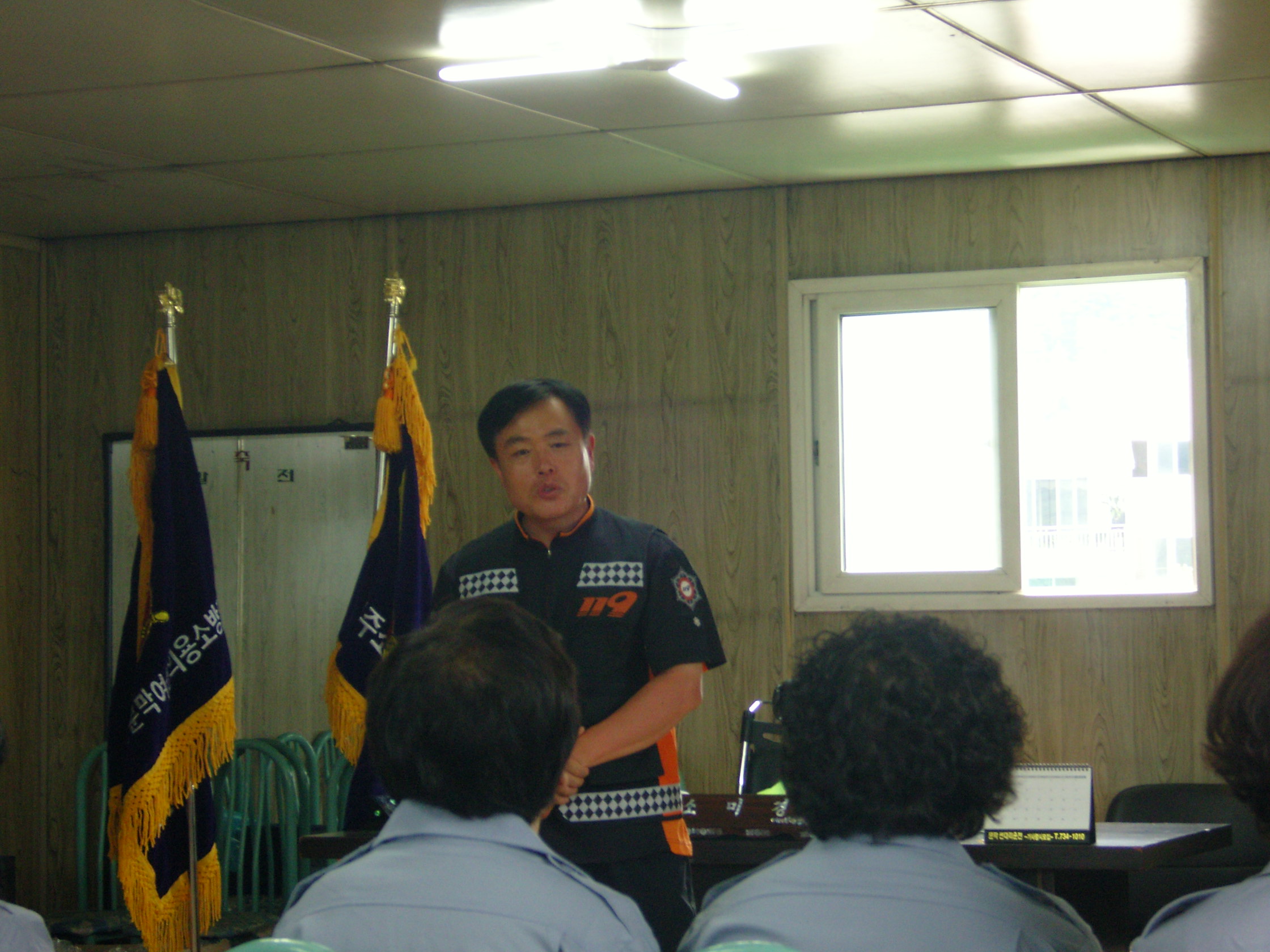 센터장님께서 의용소방대원의 소양과 긴급출동시 제복 착용,