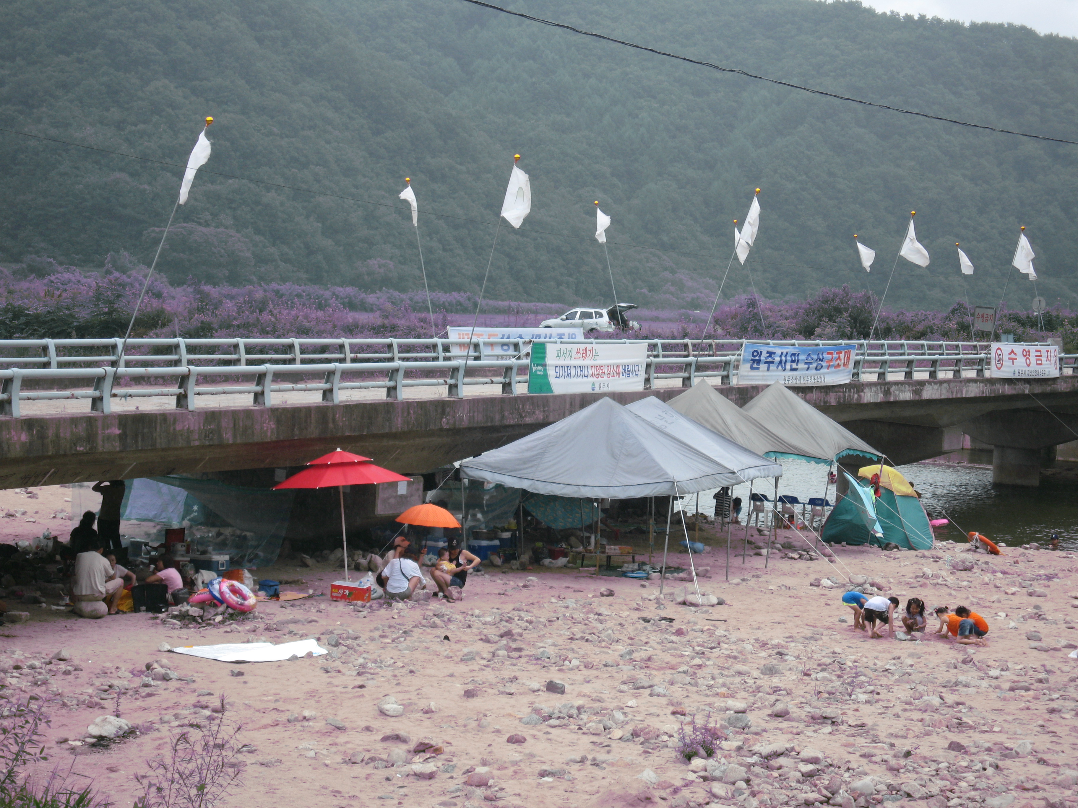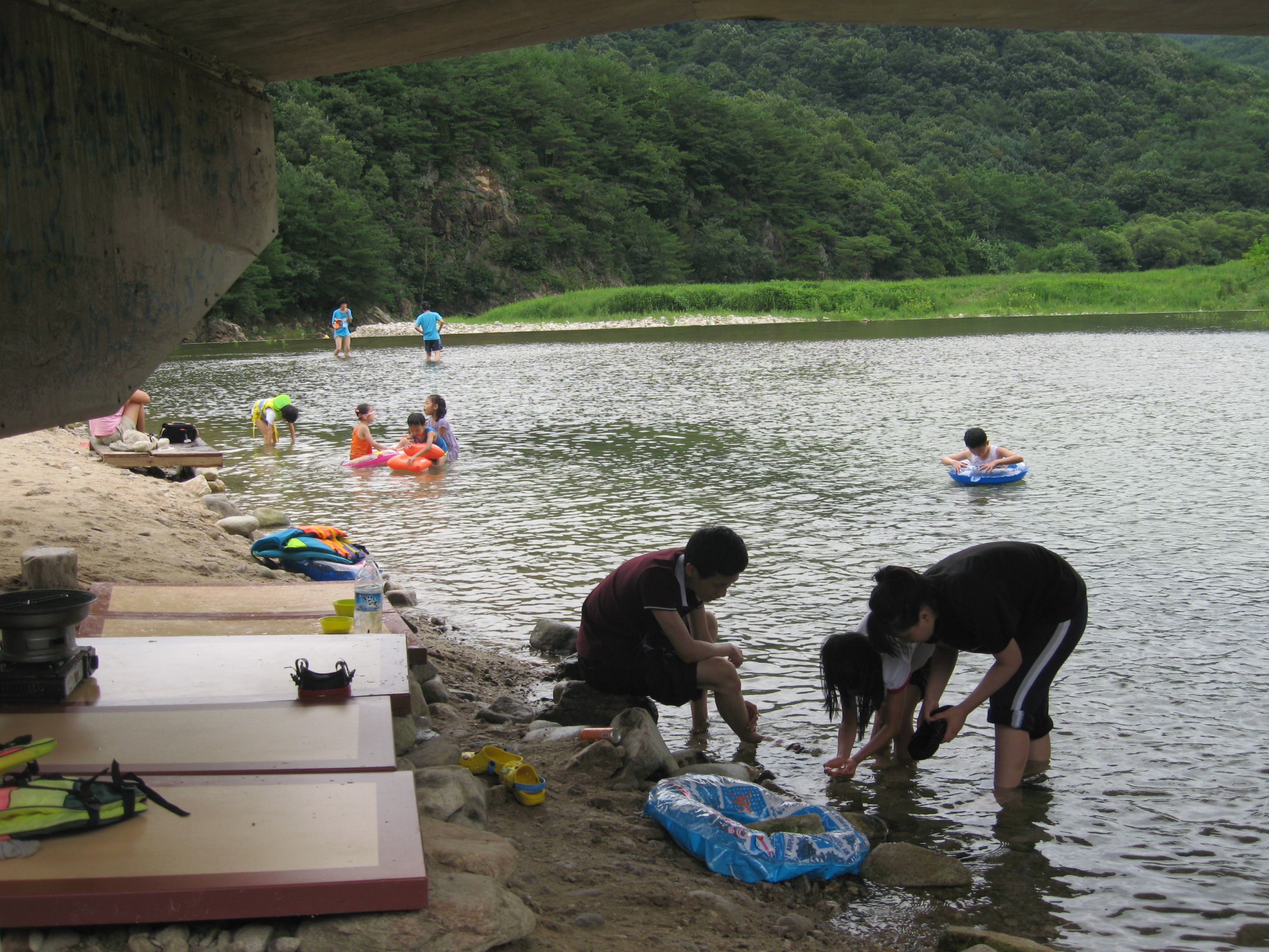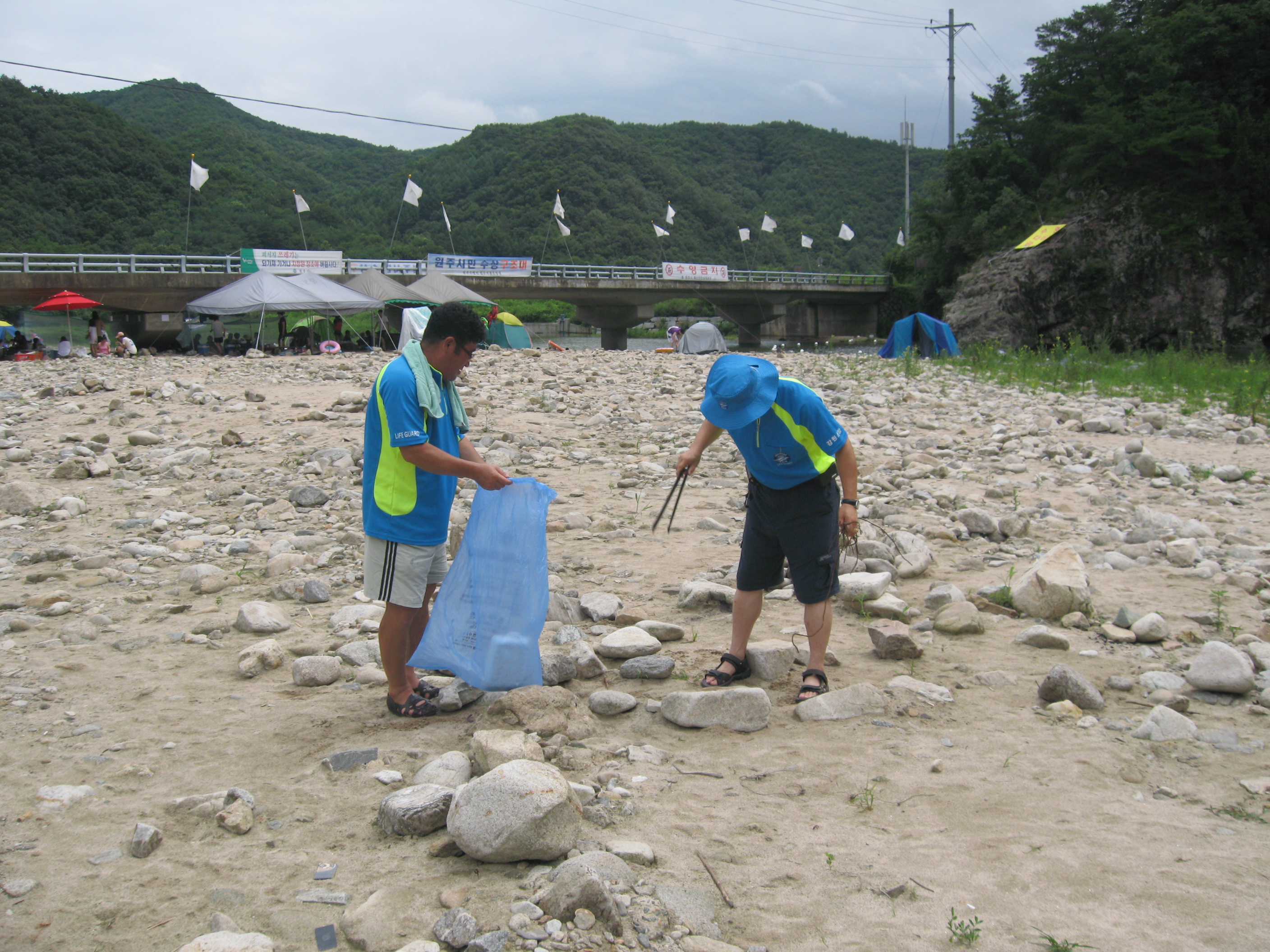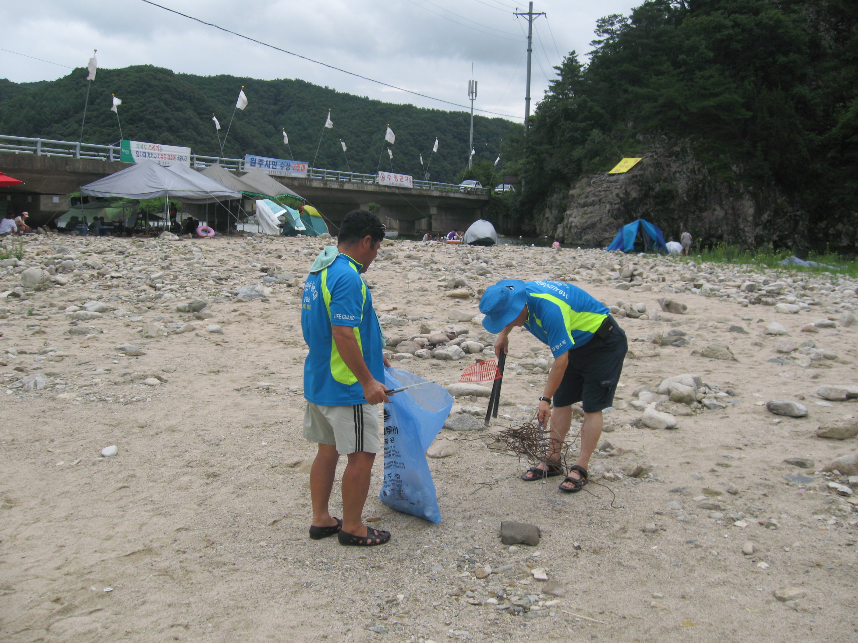 물놀이 어린이 주위 감시 및 피서객이 버린 쓰레기 수거를 하였습니다.