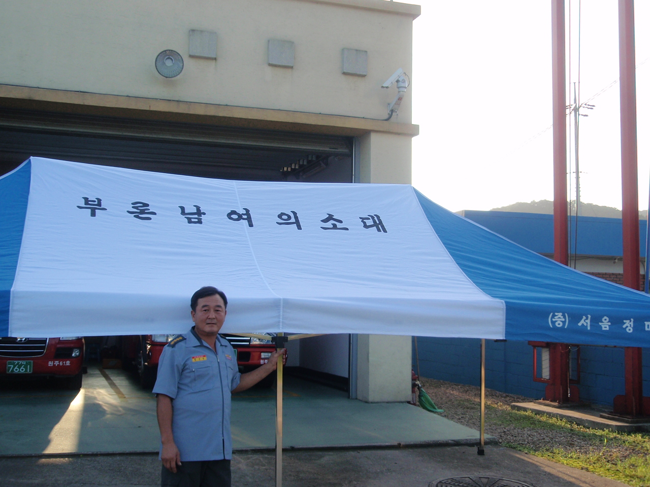 부론의용소방대(대장 김진수)와 여성의용소방대(대장 김윤수)에서는 지난 7월 18일 남한강변에서 사고로 숨진 3명의 어린이 부모님으로 부터 사고 현장에서의 활동에 감사하다는 마음으로 야외용 천막을 기증 받았습니다.