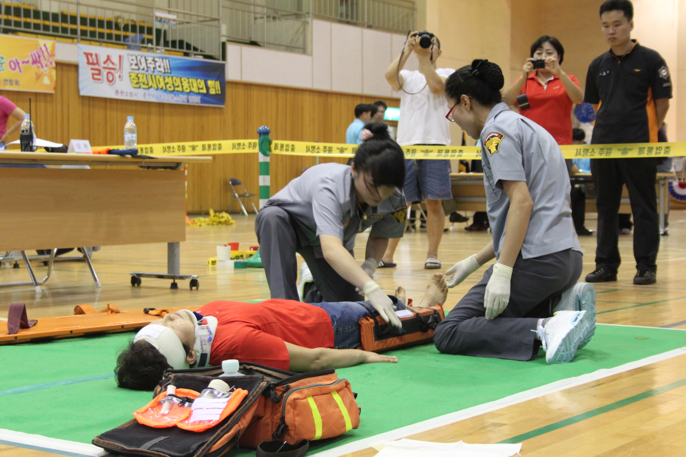 응급처치경연대회 경연종목으로 심폐소생술(소초여성대:여주화, 원재화님)과 부목고정응급처치(이은희, 박정미, 이영순님) 2종목에 참가하여 종목별 3등과 2등이라는 우수한 성적을 거두었습니다.