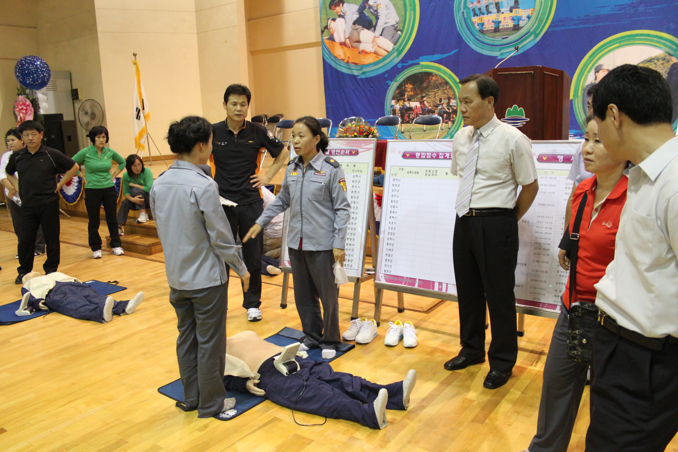 심폐소생술과 부목고정응급처치의 점수를 합산하는 규정에 의하여 원주소방서가 18개 시군에서 종합우승이라는 쾌거를 이루어냈습니다.