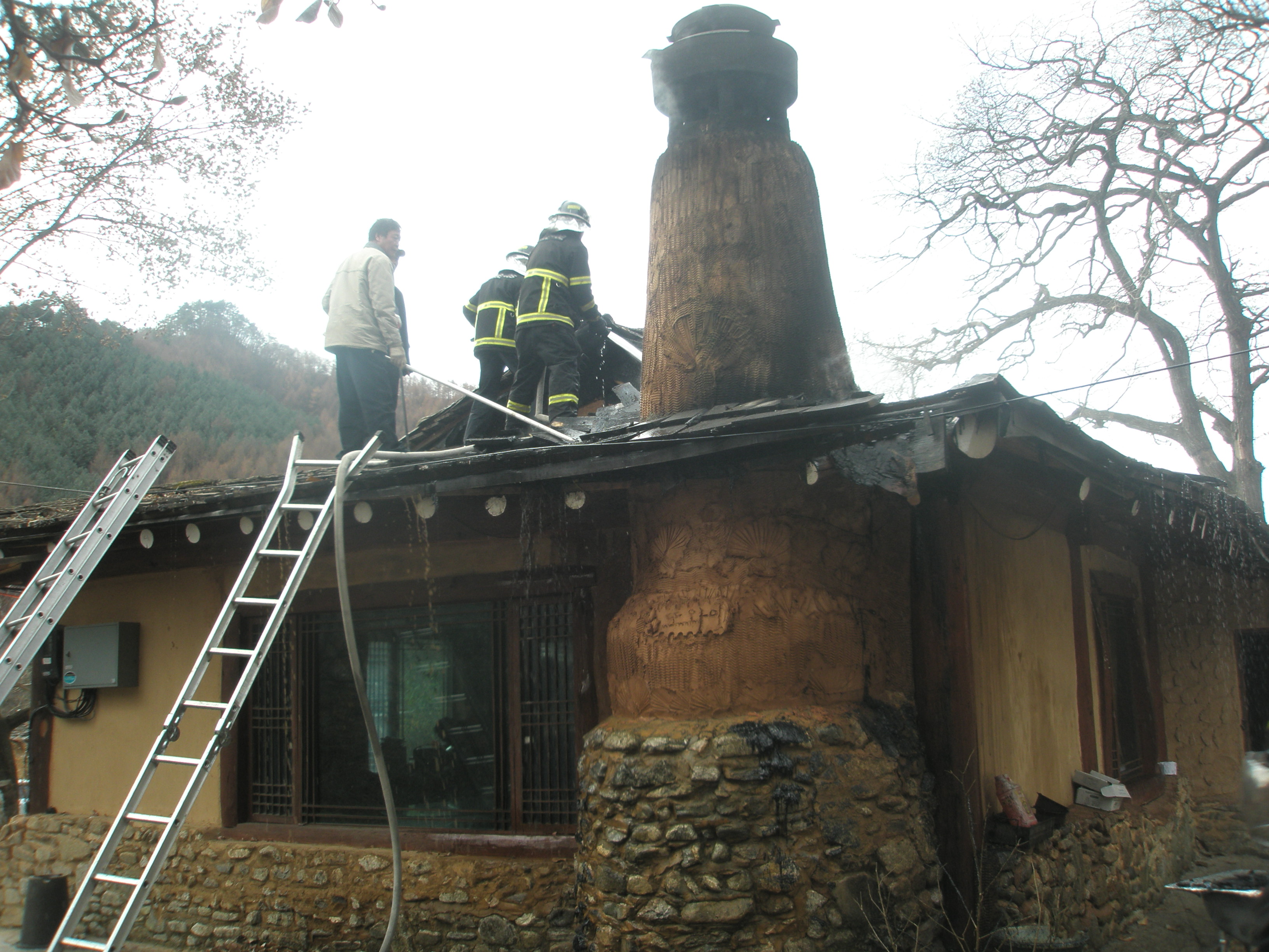 황둔의소대(대장 김재희)는 11월 26일 11시경 황둔2리 산속너와집 굴뚝에서