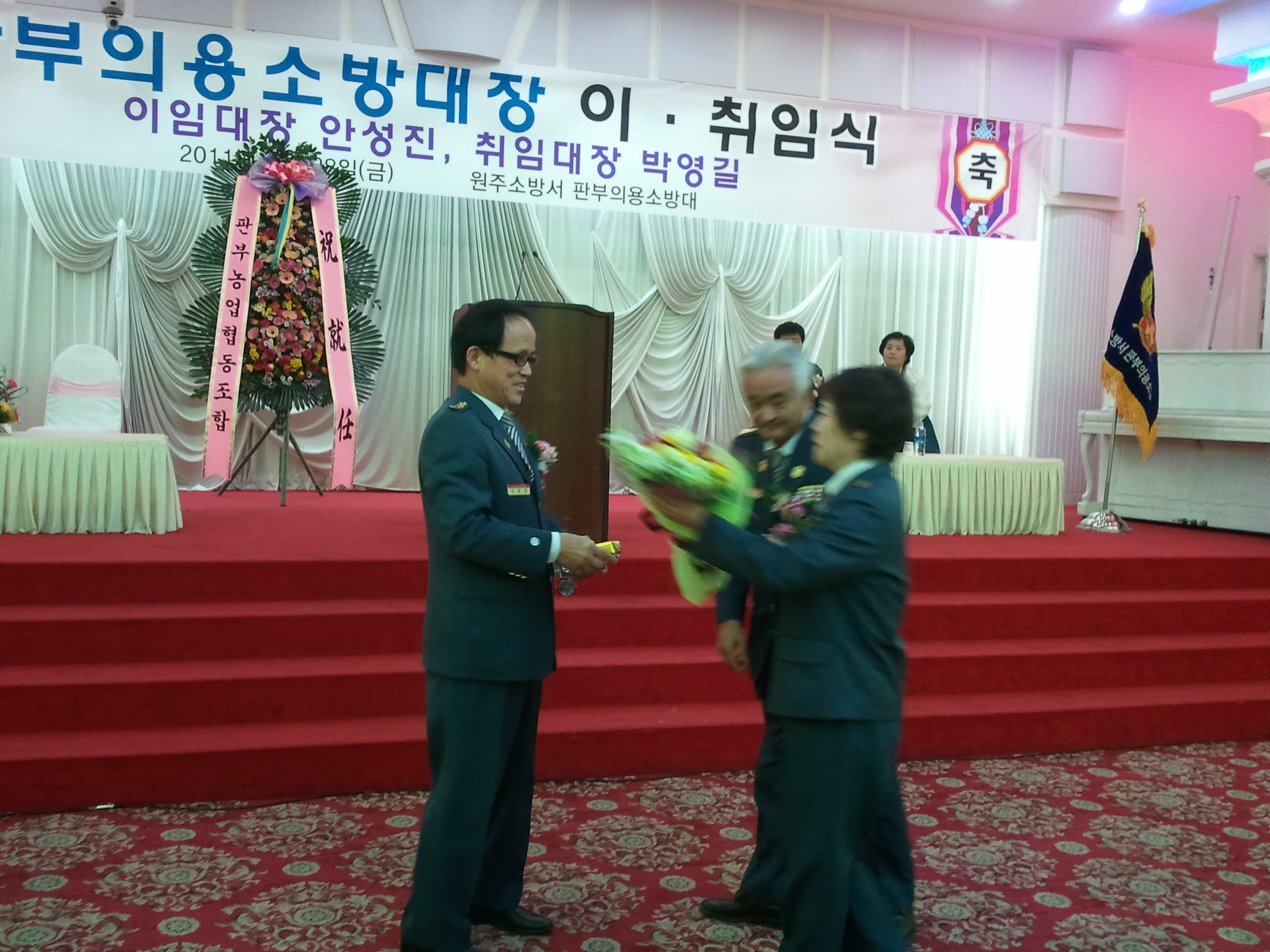 흥업여성의용소방대 오오석대장외 2명이 판부의용소방대 이 취임식에 다녀왔습니다.