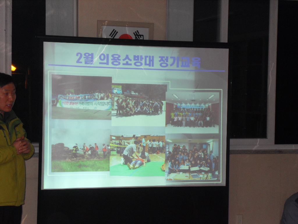 부론의용소방대(대장 김진수)는 지난 2월 28일 오후 6시 부터 부론의용소방대 사무실에서 2월 정기교육을 원주소방서 대응관리 계장님을 모시고 27명의 대원이 참여한 가운데 실시 했습니다. 이날 교육은 늦은 시간임에도 불구 하고 27명이라는 많은 대원이 참여한 가운데 열성적으로 이뤄졌으면 1부 결산 보고에 이이서 대응관리 계장님의 교육이 9시 30분까지 진행되었습니다.