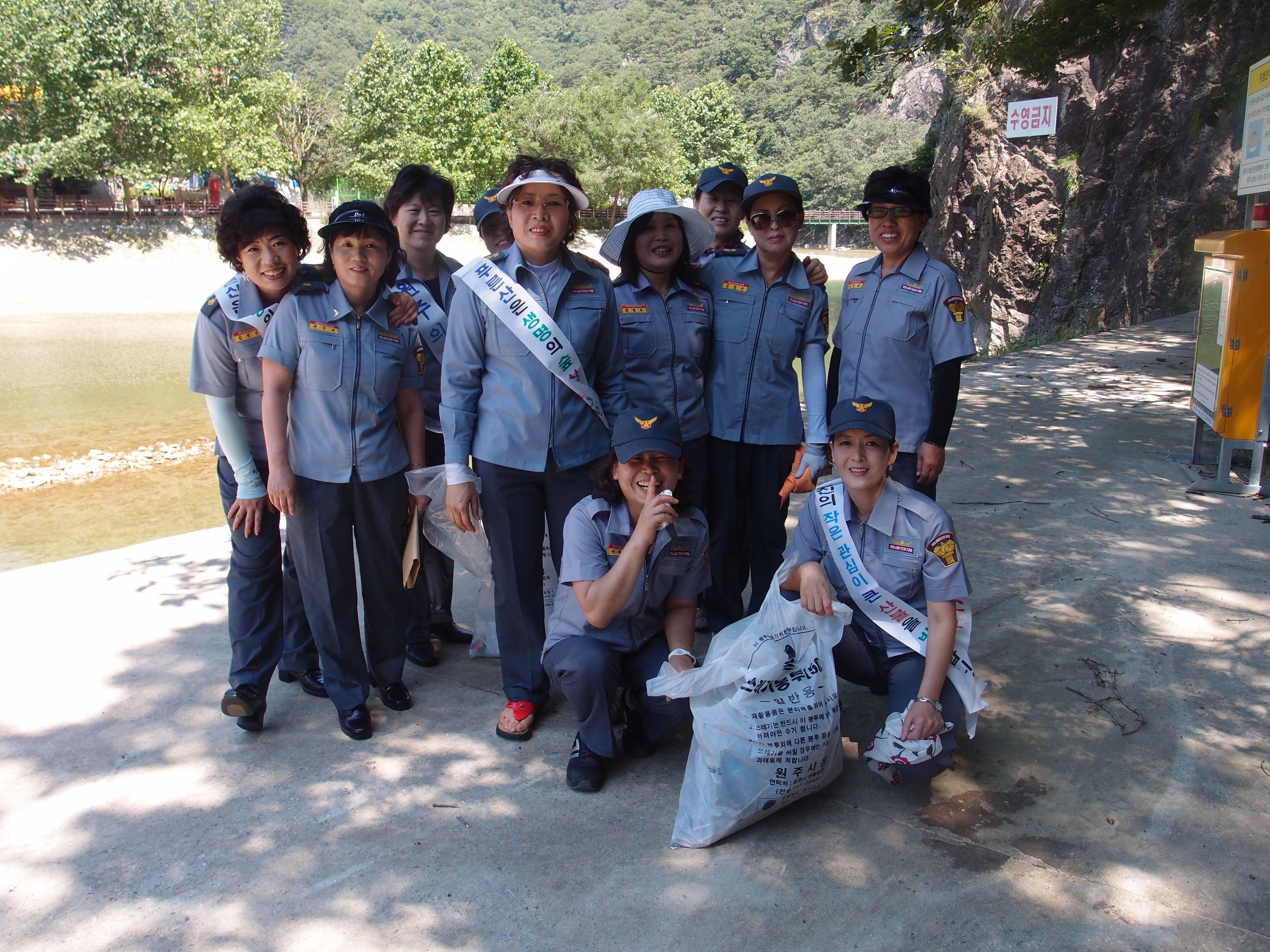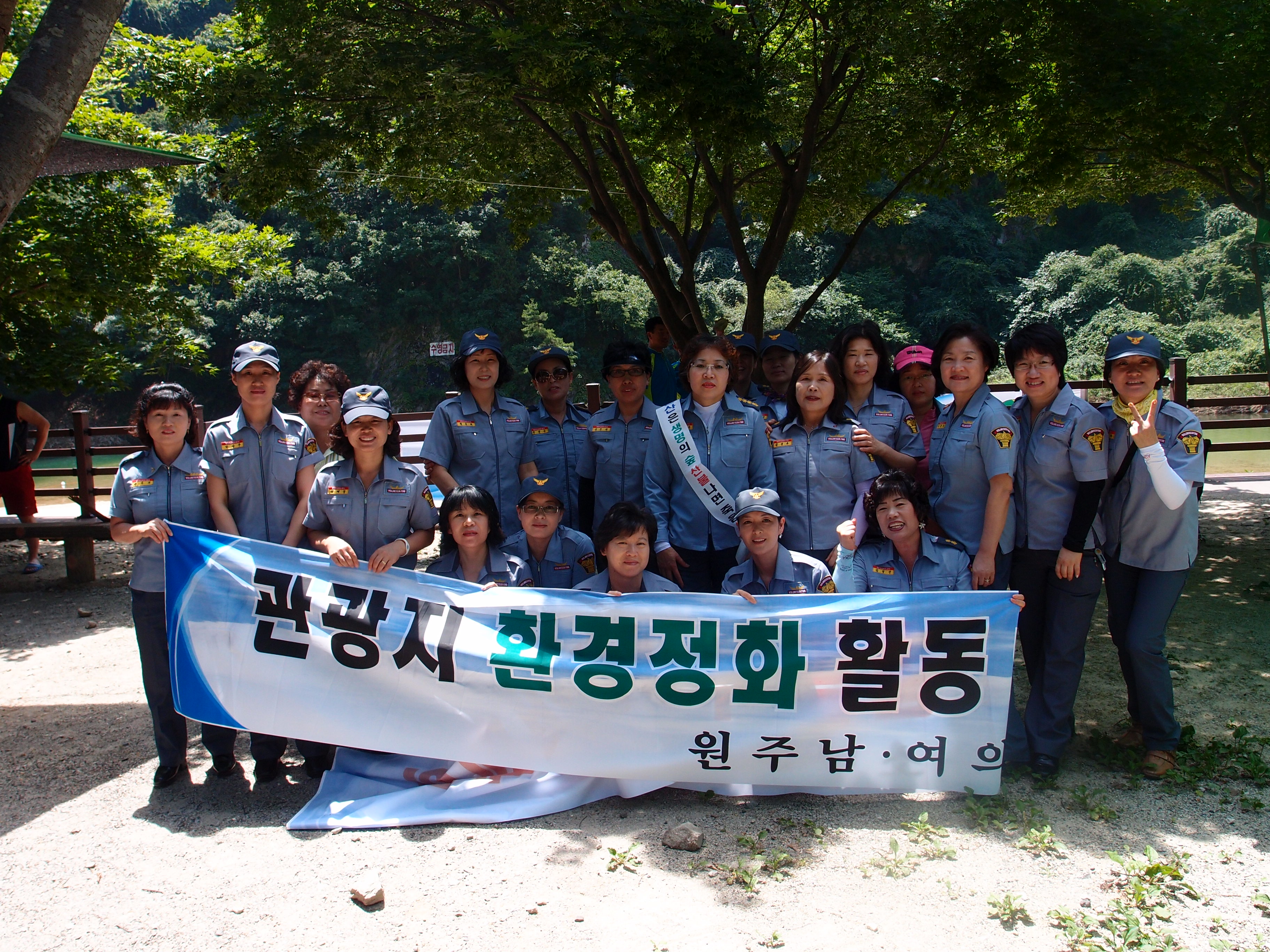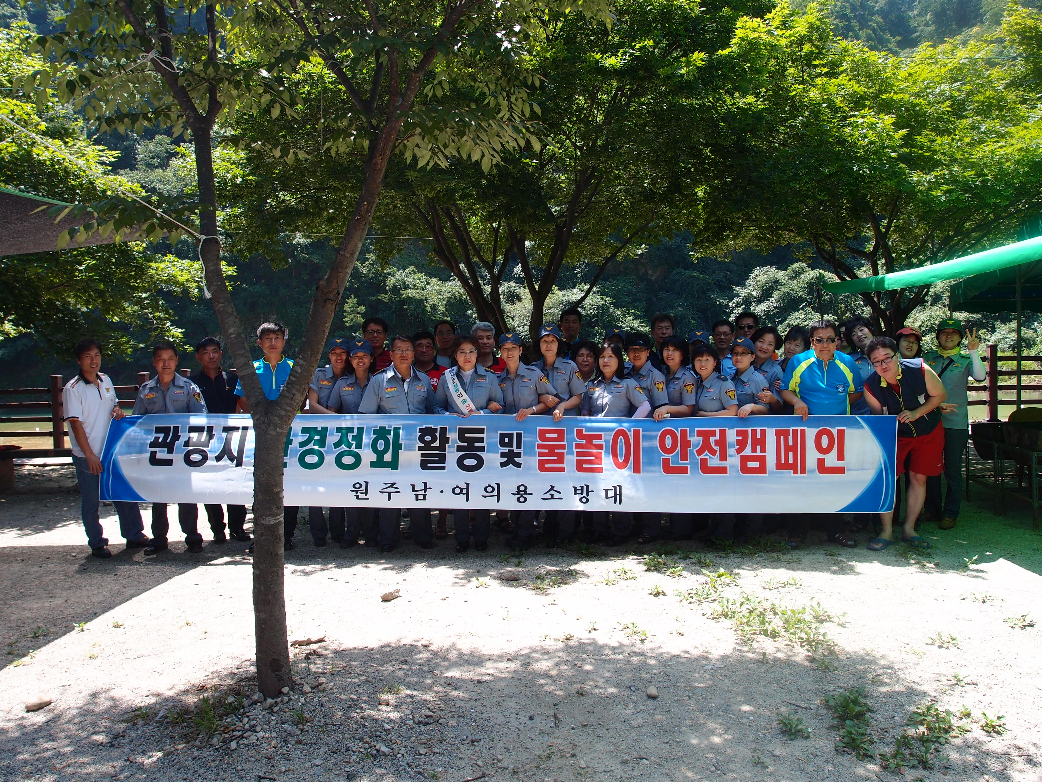 오늘 원주 남녀의용소방대는 간현유원지에 환경을 깨끗게 하기위하여