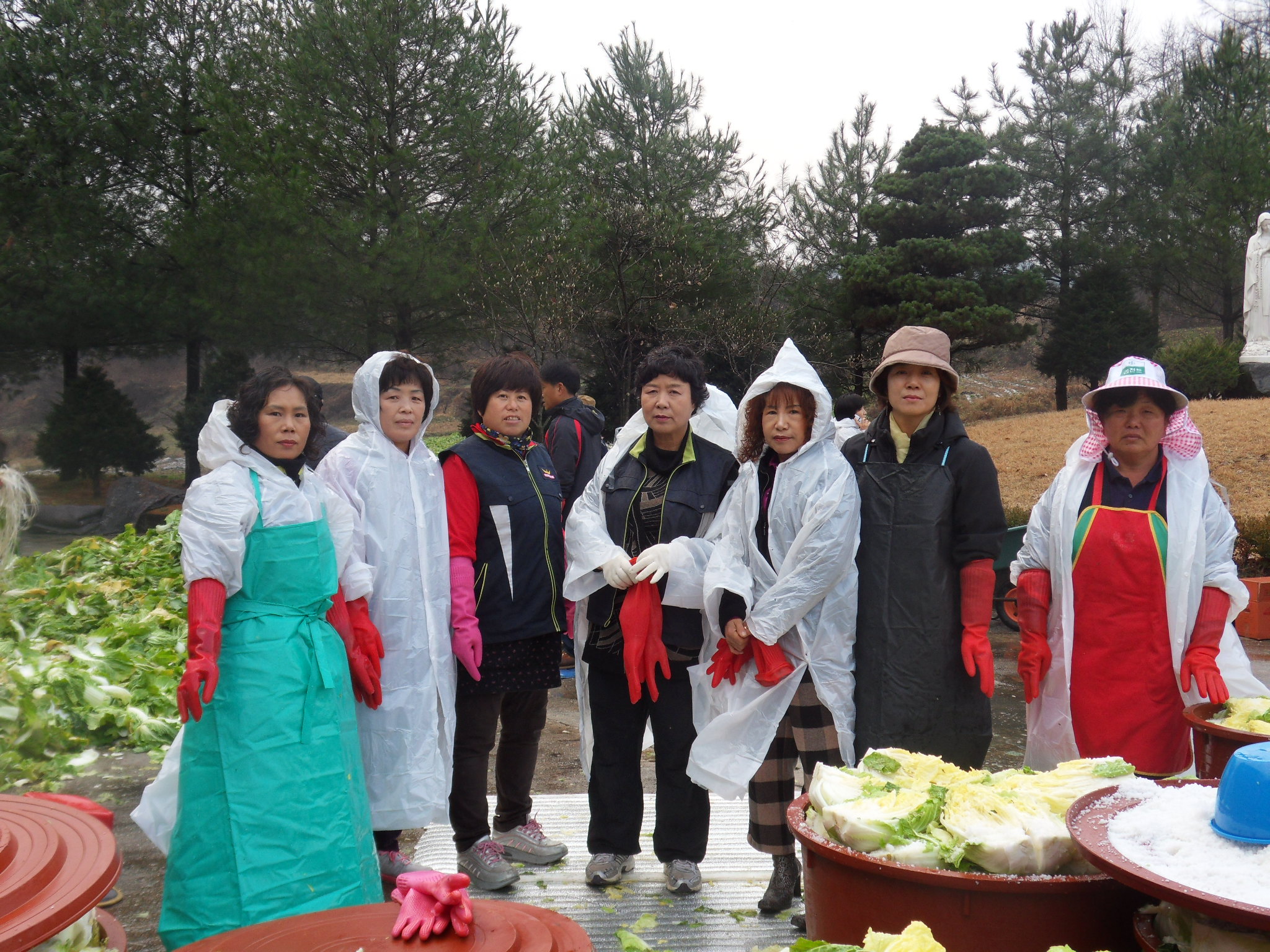 다른 천주교 단체에서도 오셔서 도와주는 바람에 1500포기의 배추를 일찍 절이고 맛있는 점심을 대접받았습니다