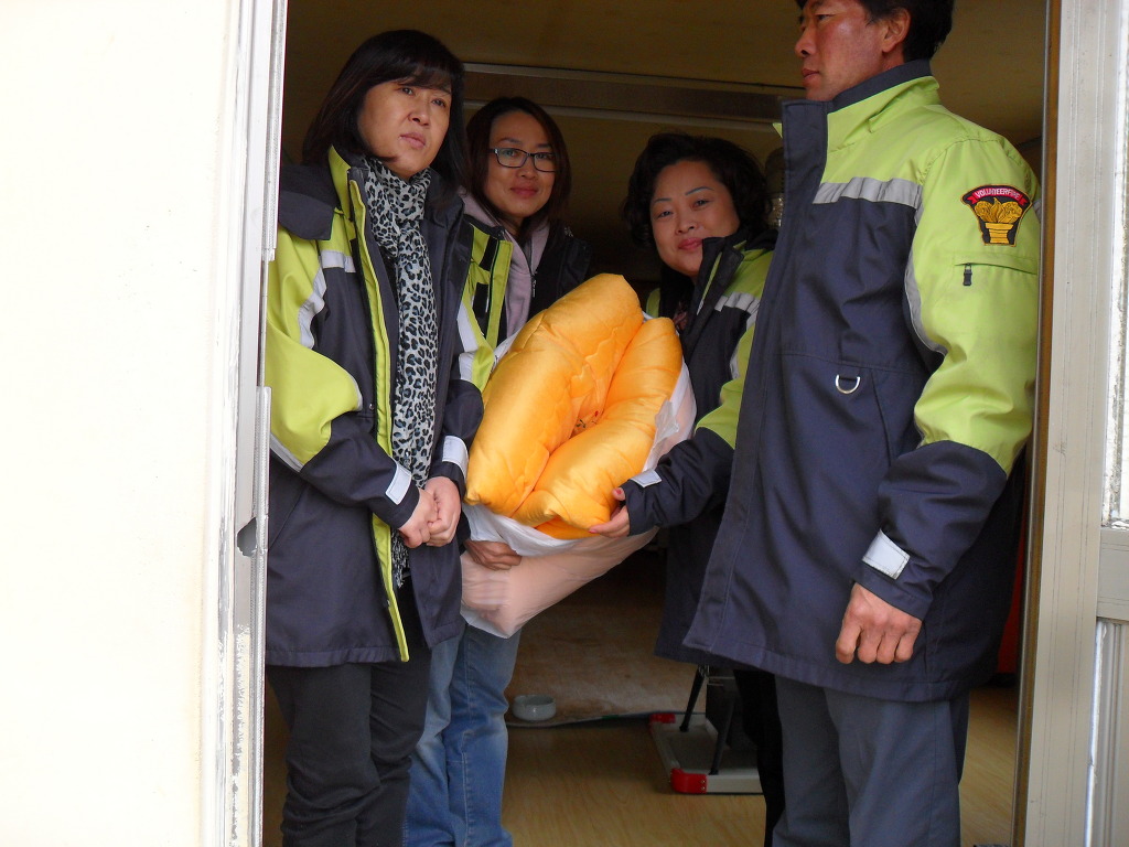 어르신들께 이불을...