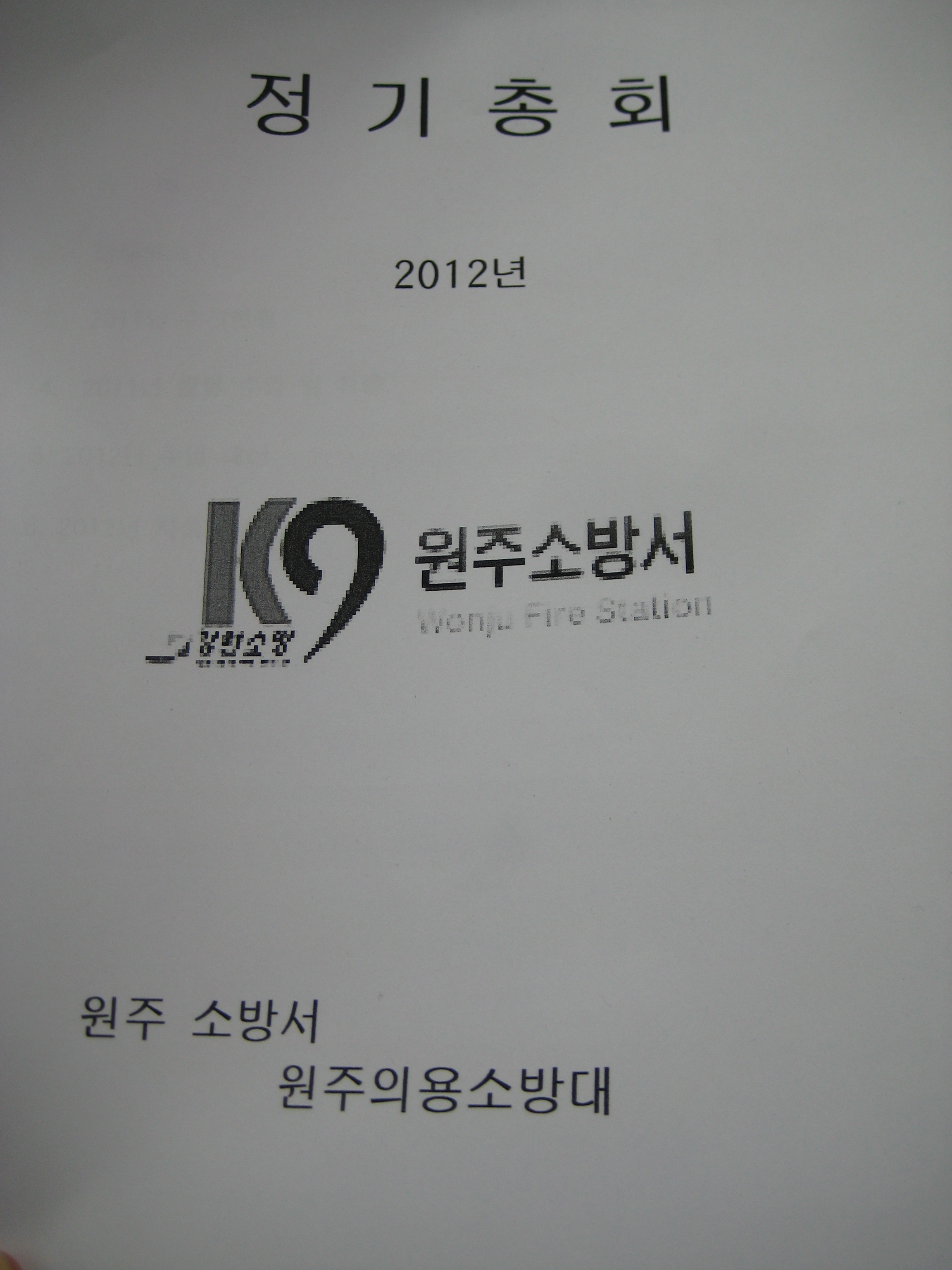 원주의용소방대(대장 조성일)는 1월27일 09:00-12:00까지 원주소방서 단구센타 회의실에서 2011년 경과보고와 2012년 행사계획 보고를 하였고, 이동원,양동선대원의 감사 선출도 하였습니다