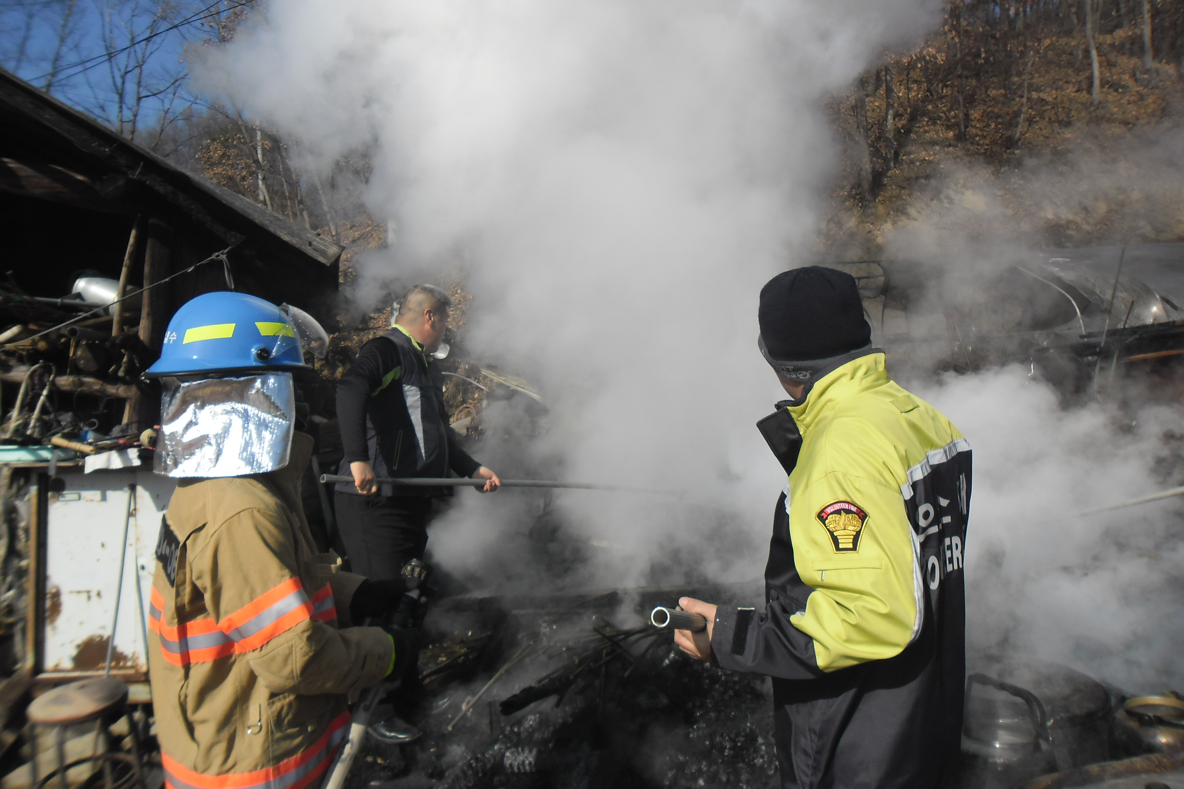 파헤쳐가며 물 뿌려 확실 하게 진압 하였다