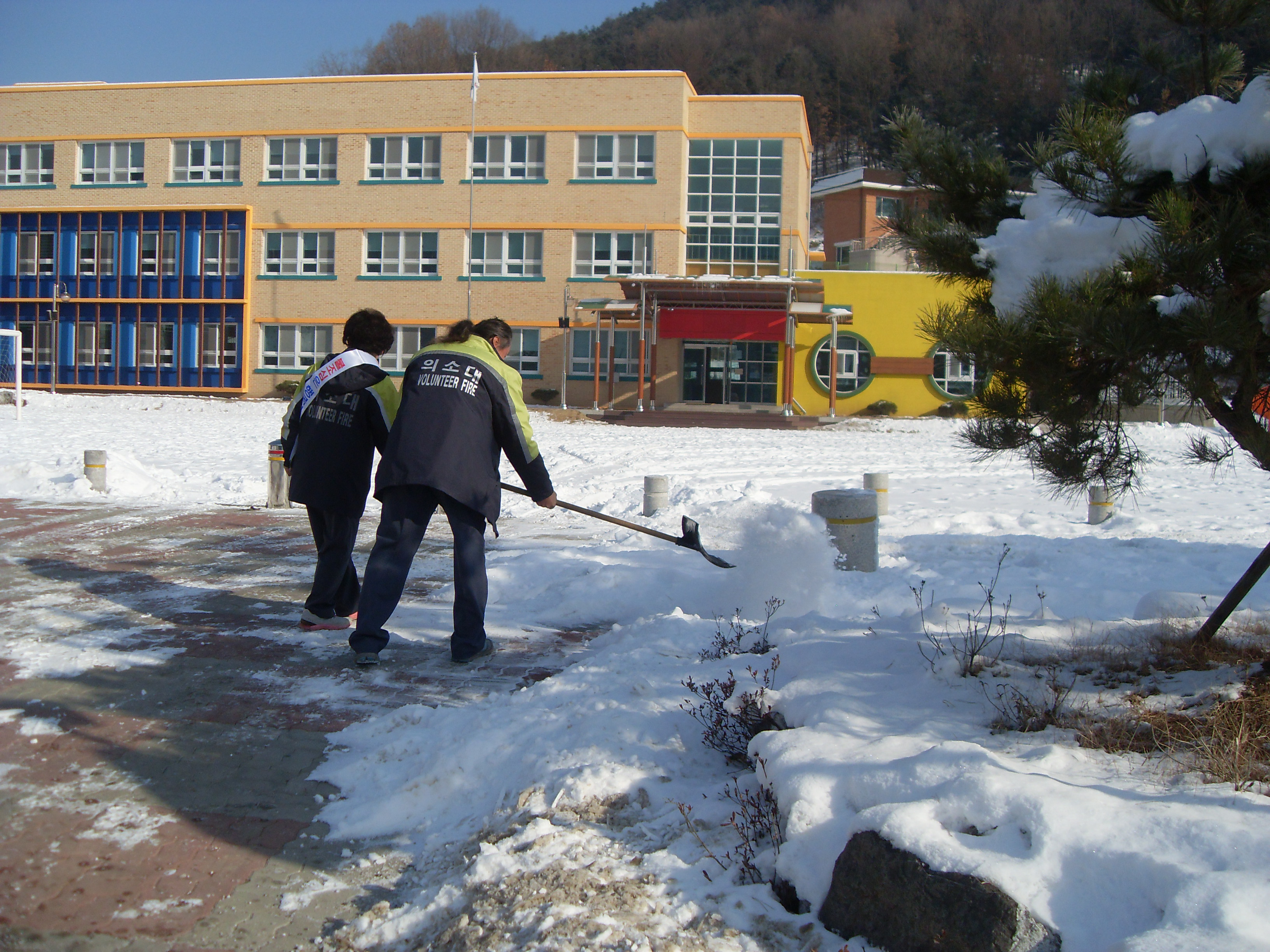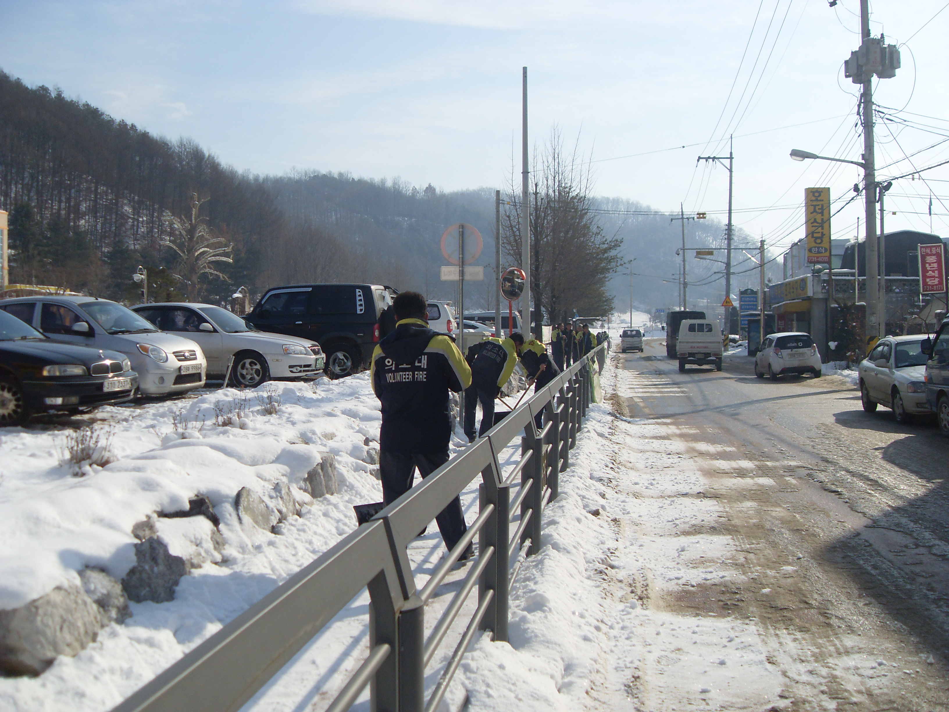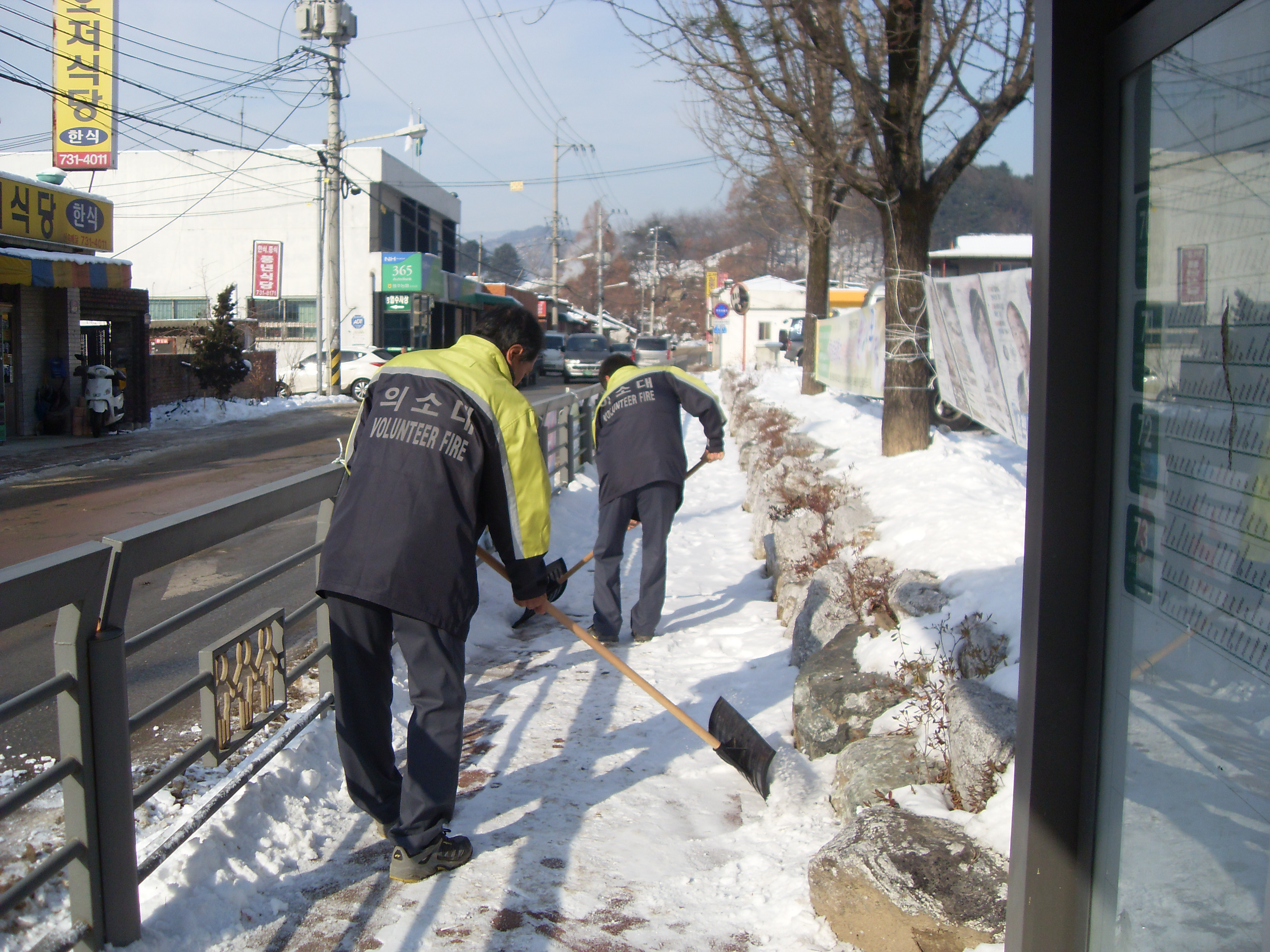 인도가 눈으로 보행자의 이동이 불편하여 호저의용소방대원이