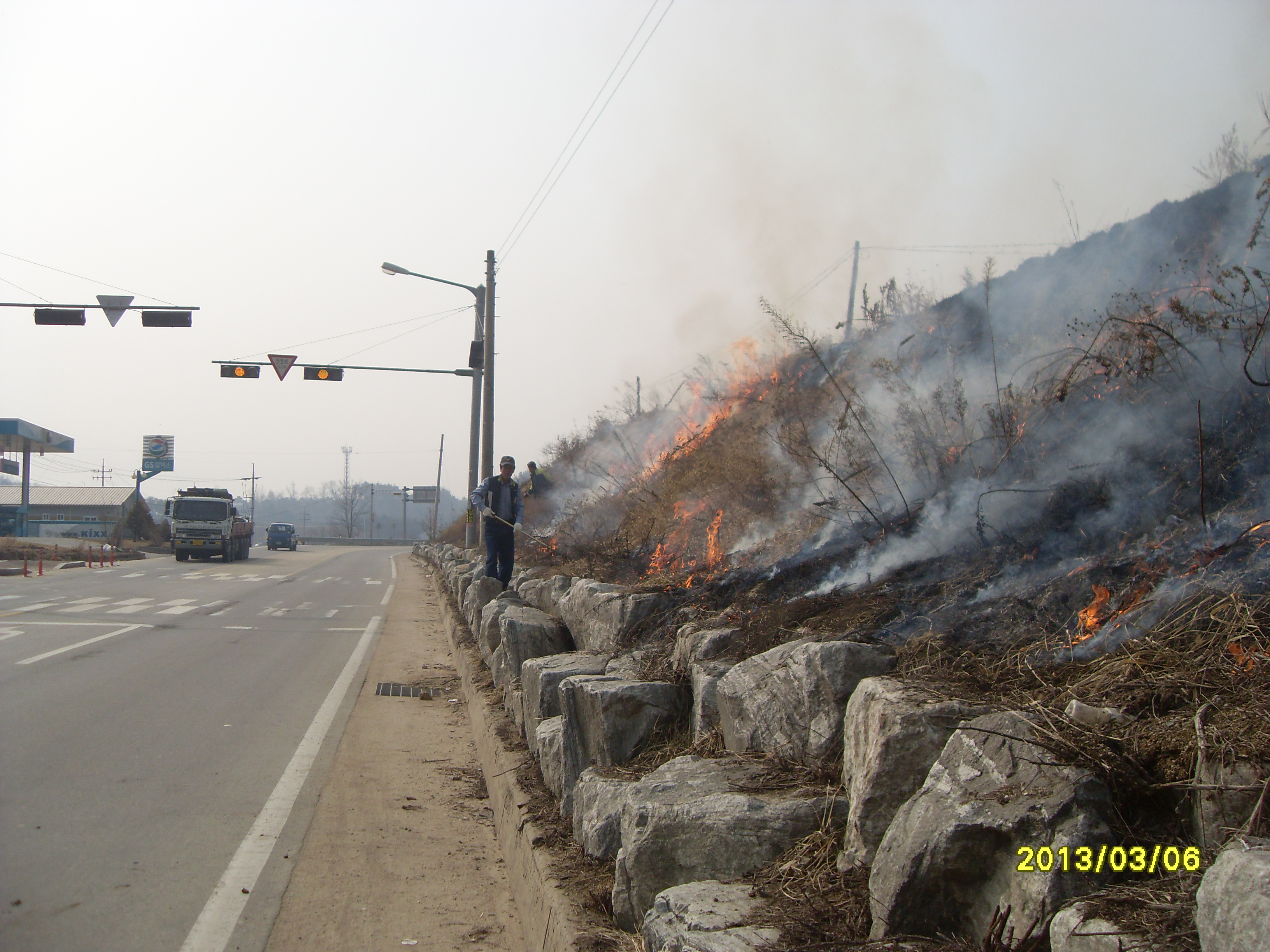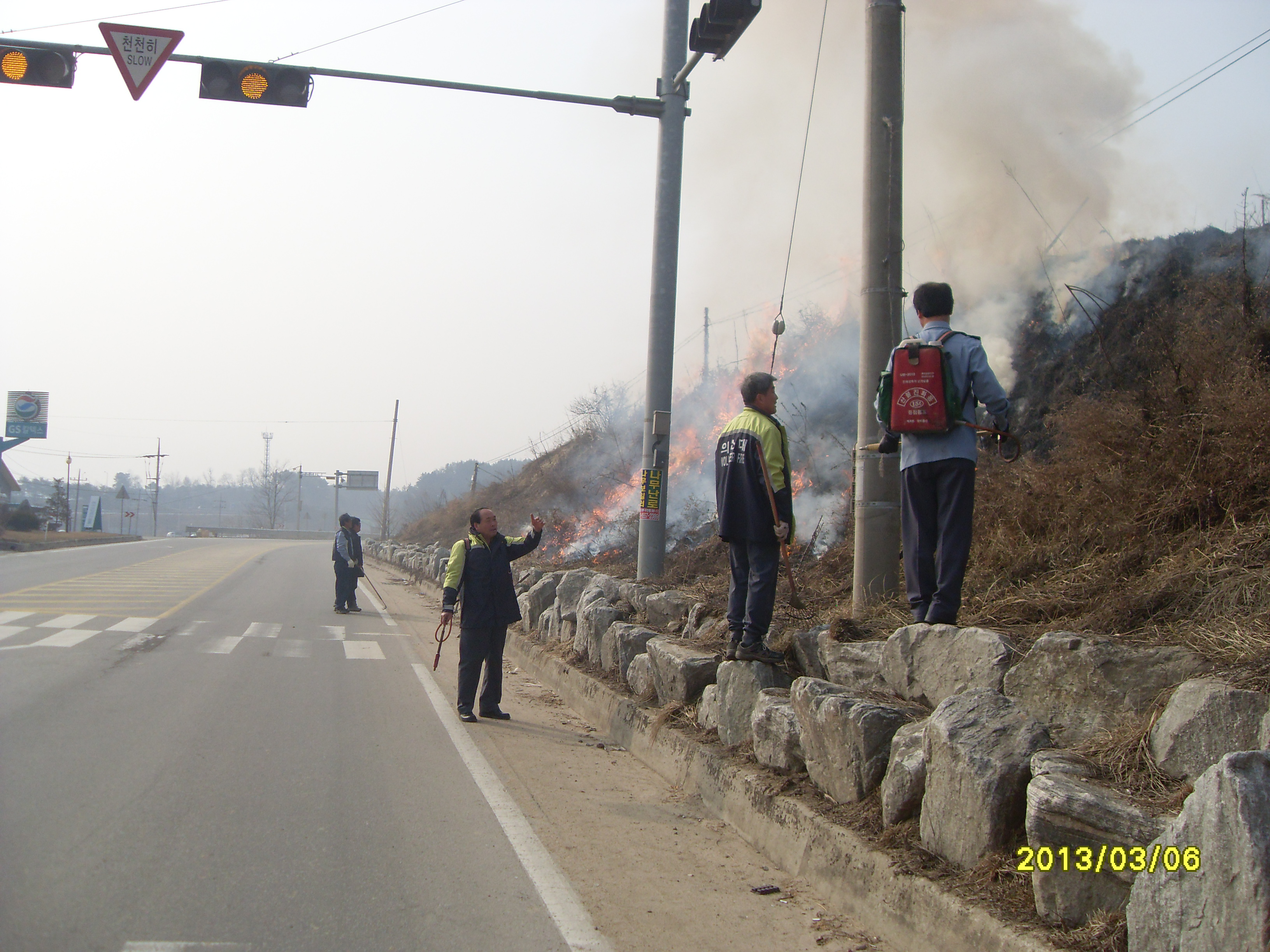 이번 화재는 호저면 주산1리,주산2리 농산부산물 및 논,밭두렁 소각의 날을 맞아 오전중에 소각을 마칠것을 주민에게 알리고 실시를 하였으나 일부 어르신들이 이를 무시하고 오후에 몰래 소각을 하다가 벌어진 화재였습니다,