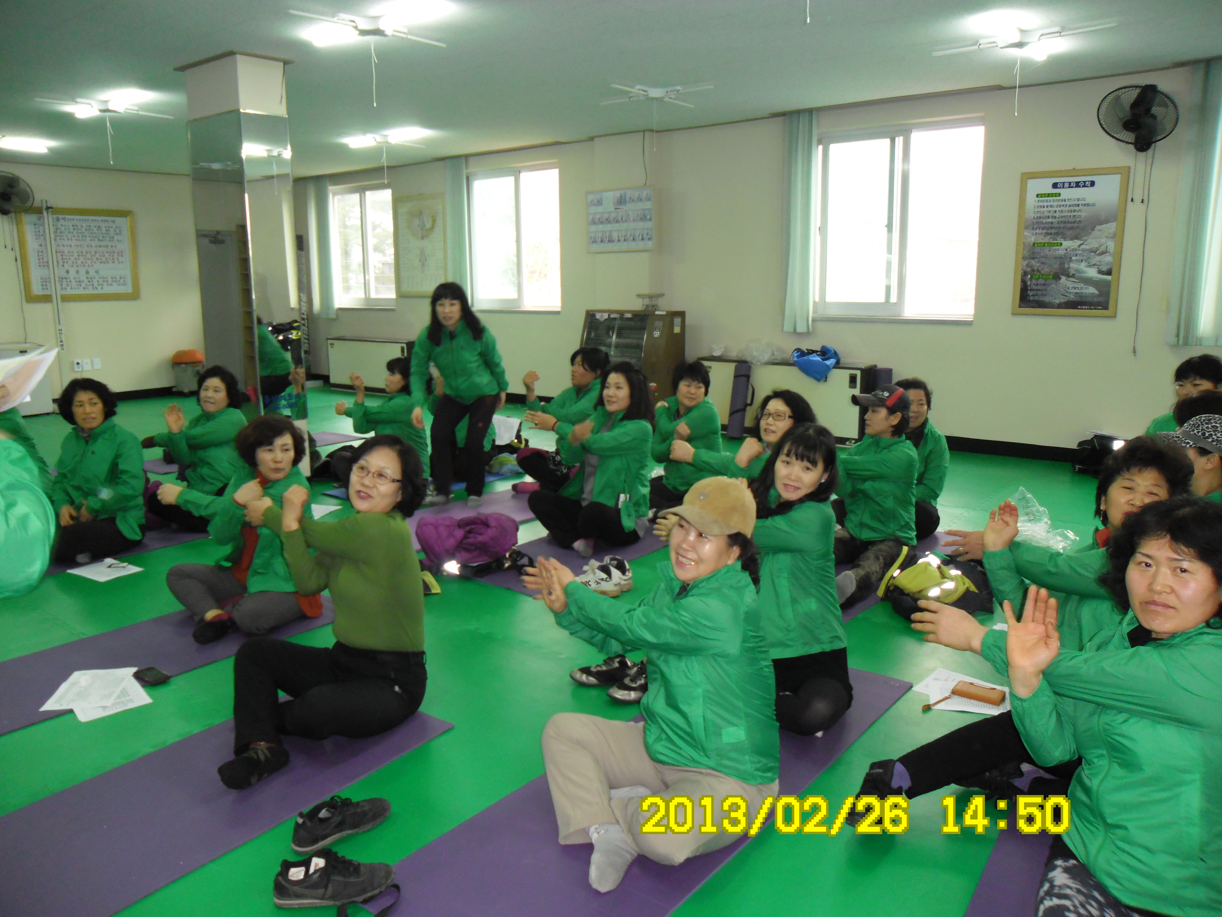 2013년 2월26일 14시에 박인수대장외27명은 정기교육을하였습니다.교육이 끝나고 겨울에 뭉쳐있던 근육을 풀어주는 요가도 배웠습니다.