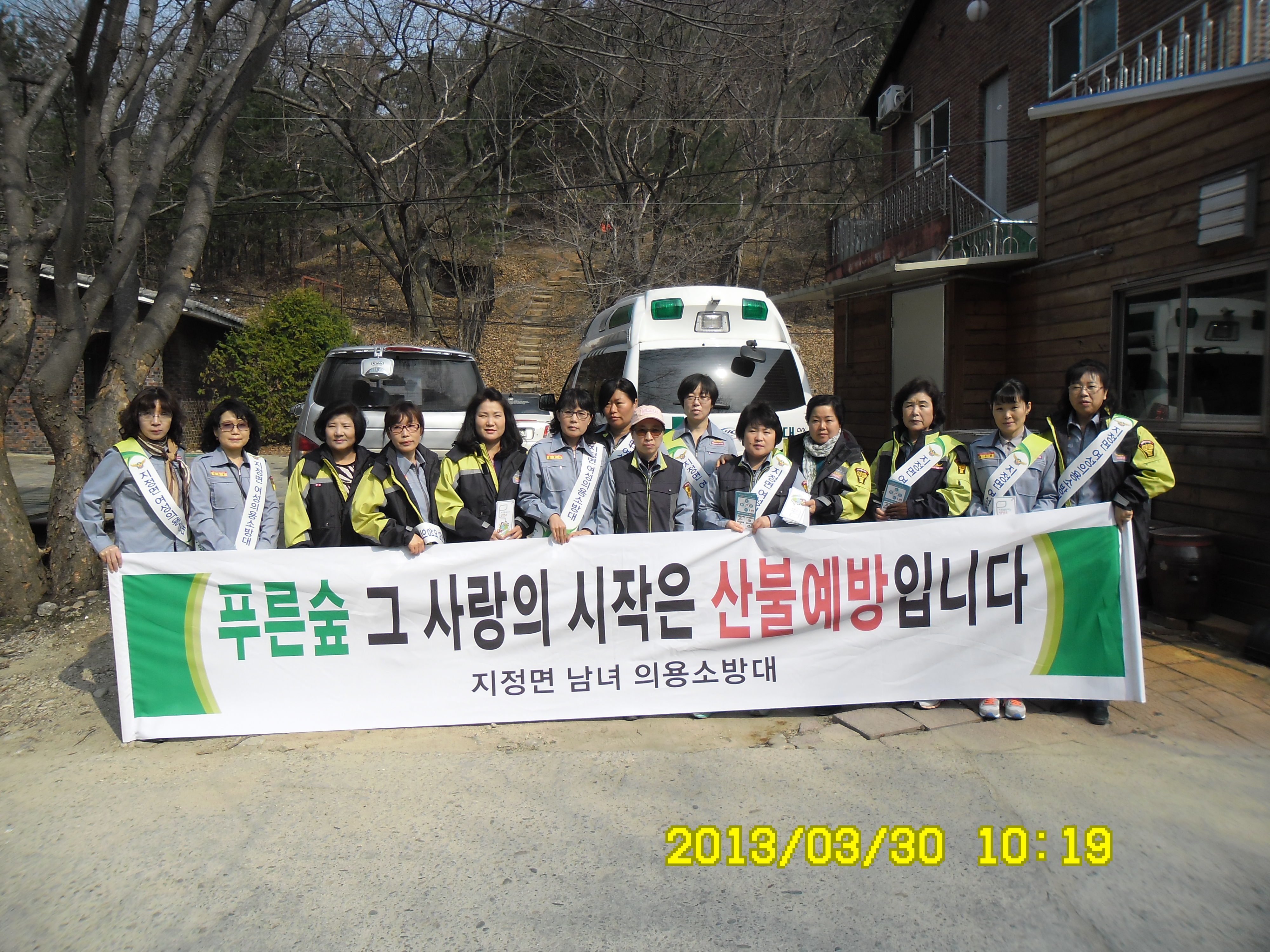 2013년 3월 27일10:00에 지정여의소대 대장 박인수외16명은 산불조심 캠페인을 하였습니다.
