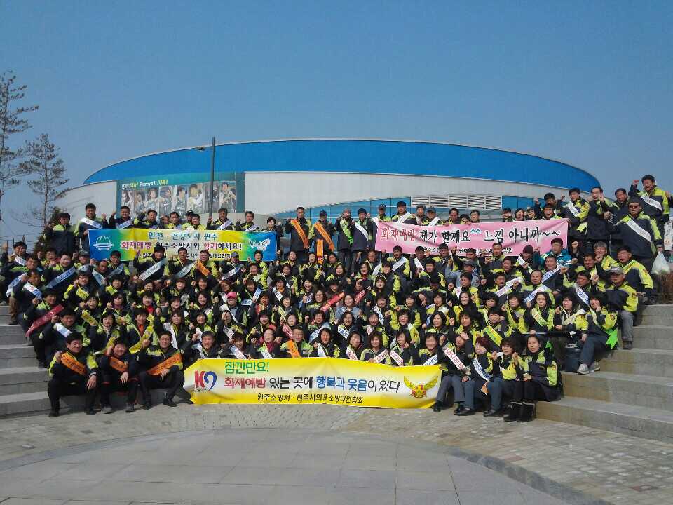 원주 동부프로미 농구단의 경기에 즈음한 불조심 캠페인에 동참하였습니다.
