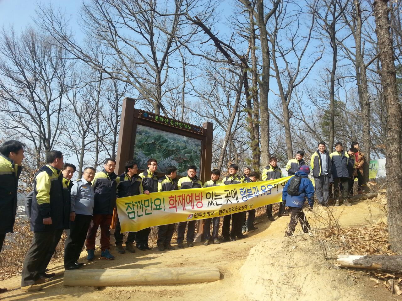 원주남성의용소방대(대장 조성일)는 2월25일 단구센터 교육장에서 2월 정기교육을 실시했습니다 . 이후 봉화산에서 산불안전켐페인도 실시했습니다