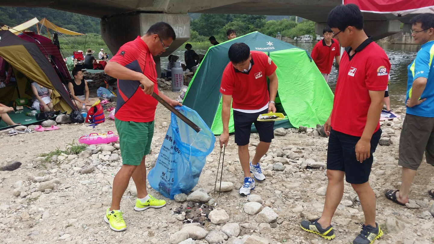 원주남성의용소방대 조성일대장외(42명)은 8월17일 정기교육 및 여름철 물놀이 안전근무 해단식과 함께 칠봉유원지에서 환경정화활동을 하였습니다.