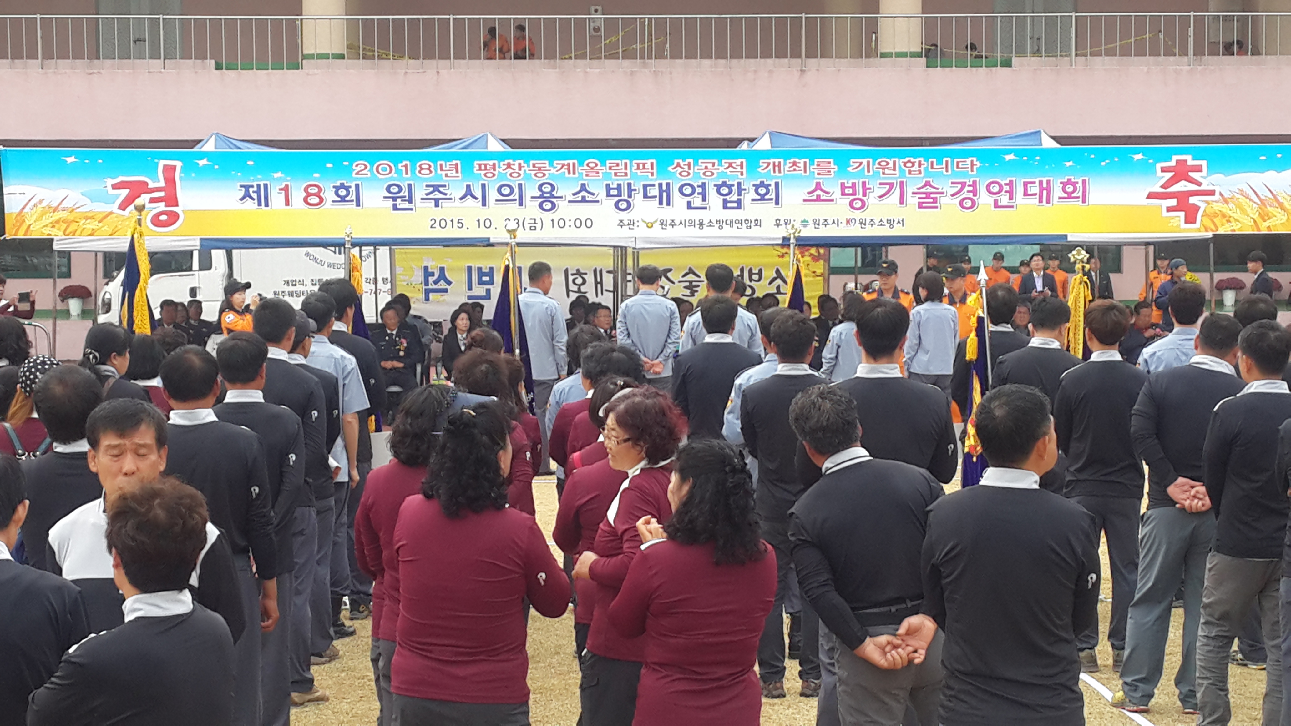 원주의용소방대(대장 조성일)는 2015년 10월23일(금) "제18회 원주시 의용소방대 기술경연대회"를 원주시 양궁장에서 원주남,여의소대 대원이 참가해 성황리에 맞쳐습니다. 경연대회 결과 원주의용소방대는 "종합우승"을 달성했습니다.