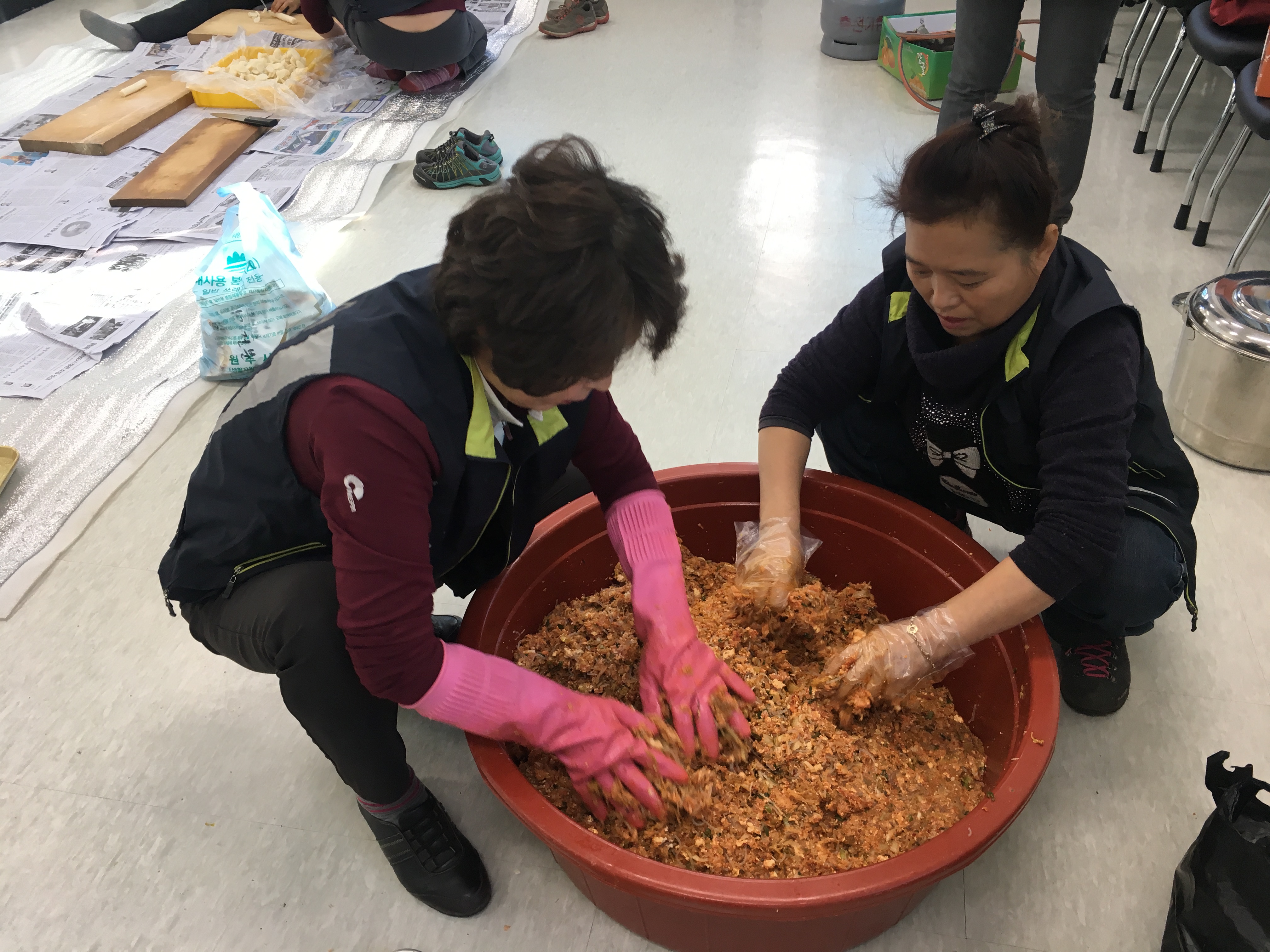 만두를 만들고 서로 화합하는,