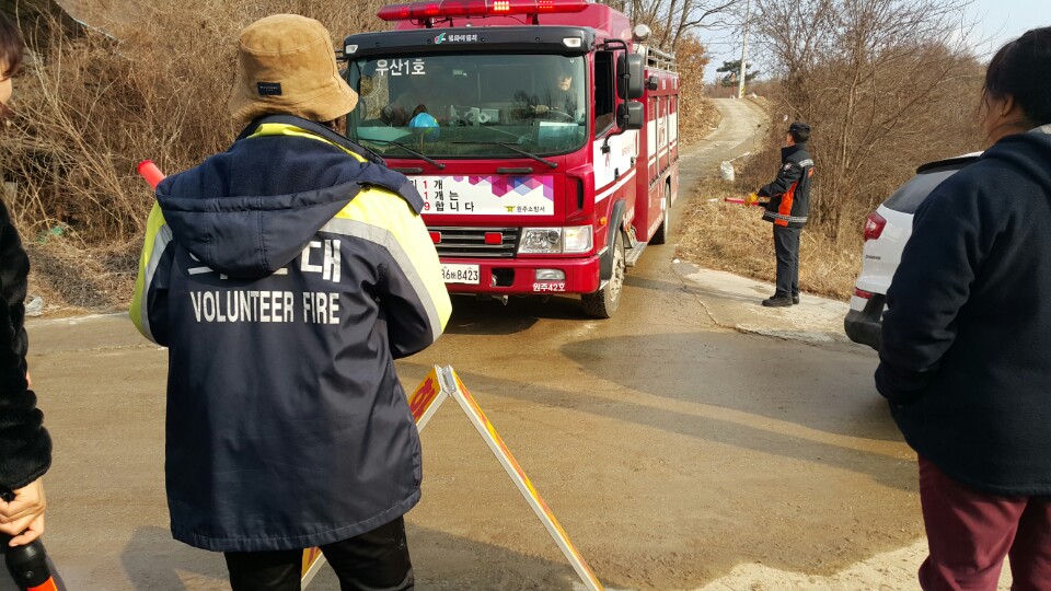 - 2017. 1. 12.(목) 12:33분경 부론면 법천리 소재 주택화재시 여성의용소방대원들이 큰길가에 입간판 설치후