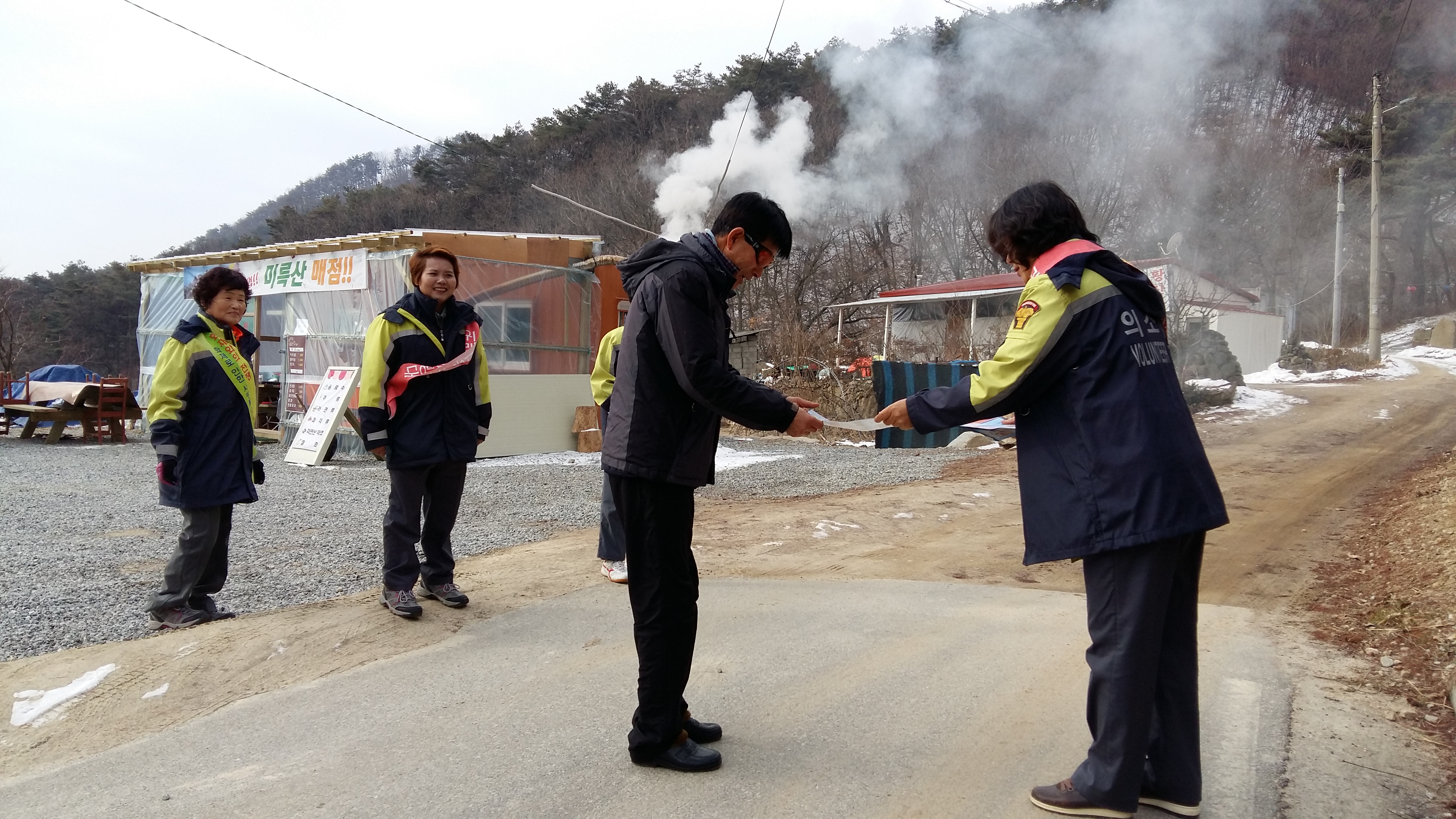 내용 : 미륵산 등산로입구 주변청소 및 산불예방 캠페인 전단지 전달