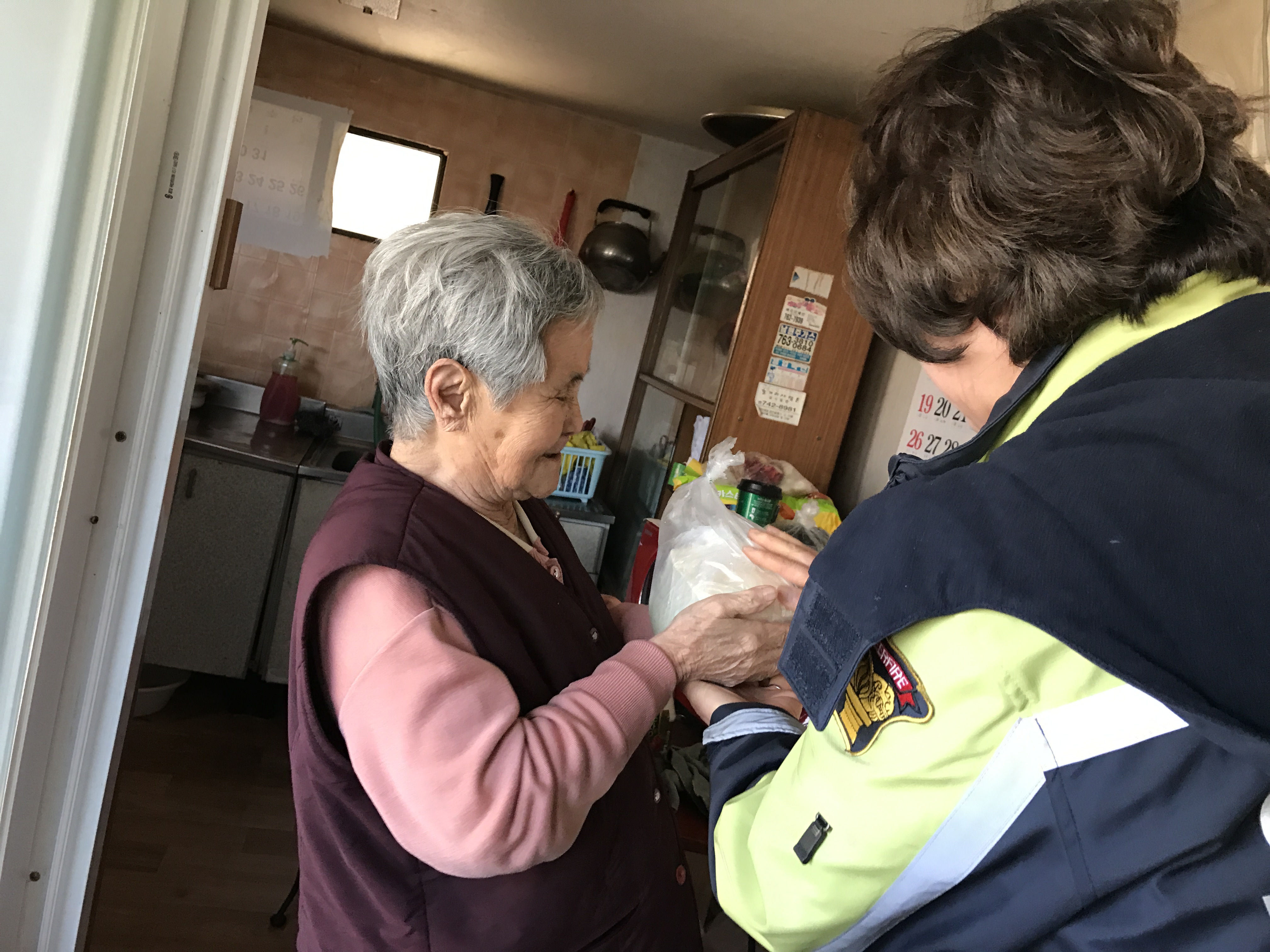 관내 독거노인들에게 반찬과 야쿠르트를 나누어드리고