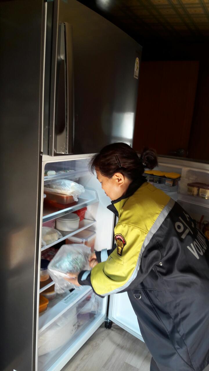 관내 독거노인들에게 반찬과 야쿠르트를 나누어드리고