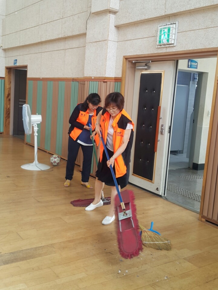 내용: 체육관 실내 바닥청소 및 입구먼지제거 쓰레기분리수거